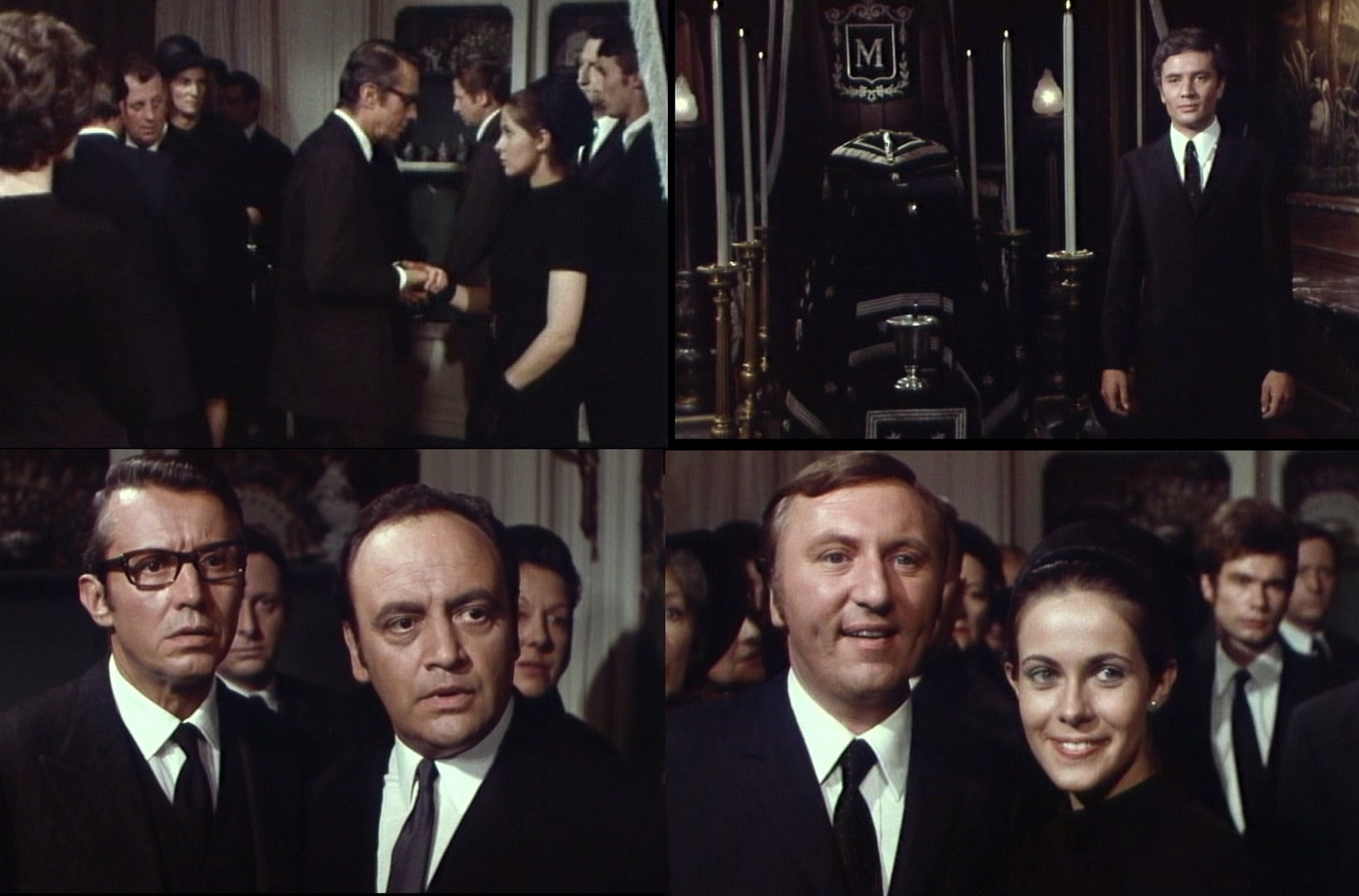 De Villefort kondoliert Linda, als „Der Rächer aus dem Sarg“ aufersteht. Michel Auclair, Claude Jade, Paul Barge, Raymond Pellegrin und Paul Le Person in André Hunebelles „Sous le signe de Monte Cristo“