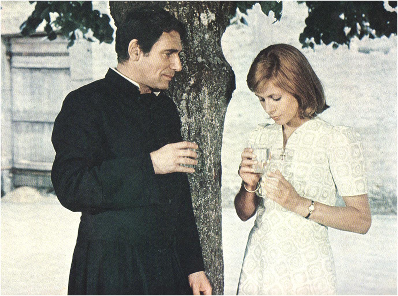 Hossein war neben Marina Vlady auch mit weiteren Schauspielerinnen liiert, eine davon spielte in „Prêtres interdits“ Claude Jades Filmcousine. Michèle Watrin hatte gerade in der Fernsehserie „La mer est grande“ eine Hauptrolle gespielt. Als Françoises Cousine steht sie dem Abbé Rastaud, der gerade Françoise nach einem Fahrradunfall verarztet, unbeholfen im Weg und er schiebt sie entnervt beiseite. Eine vergnügliche Szene, denn die beiden wollten ein Jahr darauf heiraten. Im August 1974 kommt Michèle Watrin bei einem Autounfall ums Leben. Ihr Beifahrer Robert Hossein überlebt.