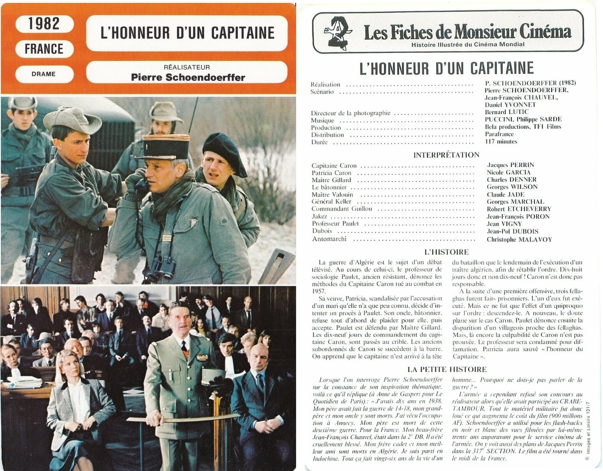So führte ein weiterer politischer Film erneut Jacques Perrin und Claude Jade zusammen: Pierre Schoendoerffers „L’honneur d’un capitaine“ . Als Anwältin Valouin kämpft sie mit einer Witwe (Nicole Garcia) gegen die Verleumdung eines 25 Jahre zuvor im Algerienkrieg gefallenen Hauptmanns (Perrin). Sie hatten dem Sujet entsprechend keine gemeinsamen Szenen mehr.