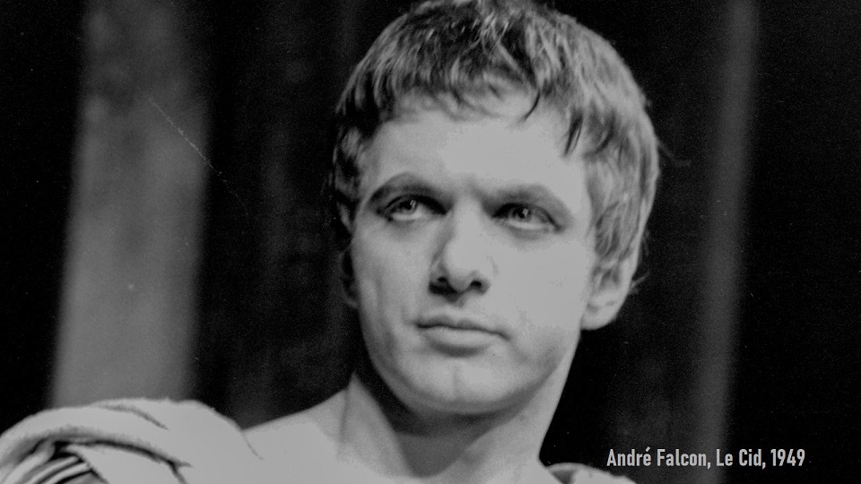 Als Belcredi spielt er den Liebhaber ihrer Mutter. „Seine jugendliche Schönheit, sein Temperament und seine Sensibilität führten dazu, dass ihm 1949 die Rolle des Cid anvertraut wurde, in der er triumphierte und die ihm seine Mitgliedschaft einbrachte.“, schreibt die Comédie Française zu Falcons Rodrigo.