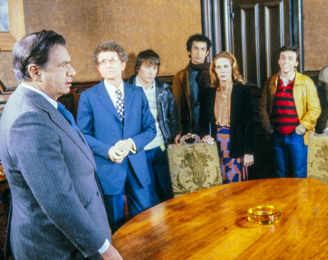 Michel Galabru, Darry Cowl, Claude Jade und rechts Vincent Vallier alias Yves Dangerfield als Gilles