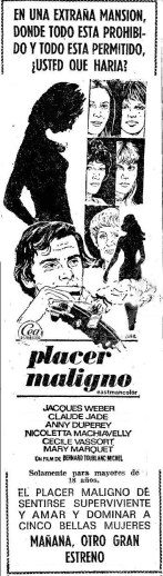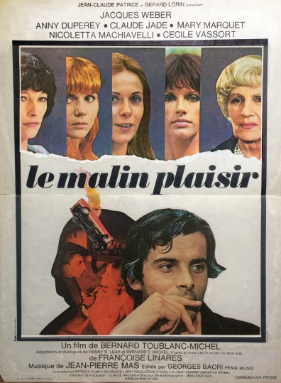 Dieses Bild aufgreifend, bietet ihr nun auch das Kino die Rolle der Verführerin mit mörderischem Geheimnis. Bernard Toublanc-Michel, der Jean-Claude Dauphin („Adolphe“) und Isabelle Adjani („Le petit bougnat“) fürs Kino entdeckt hatte, gibt ihr den Part der zu Beginn prüde erscheinenden, doch sehr aparten und selbstbewussten Julie in seinem Thriller „Le malin plaisir“ (Das böse Vergnügen). Hatte Unifrance zuvor Brigitte Fossey als Julie angekündigt, ist es nun Claude Jade, die sich mit dieser Rolle einmal mehr von ihrem prägenden Image entfernt.