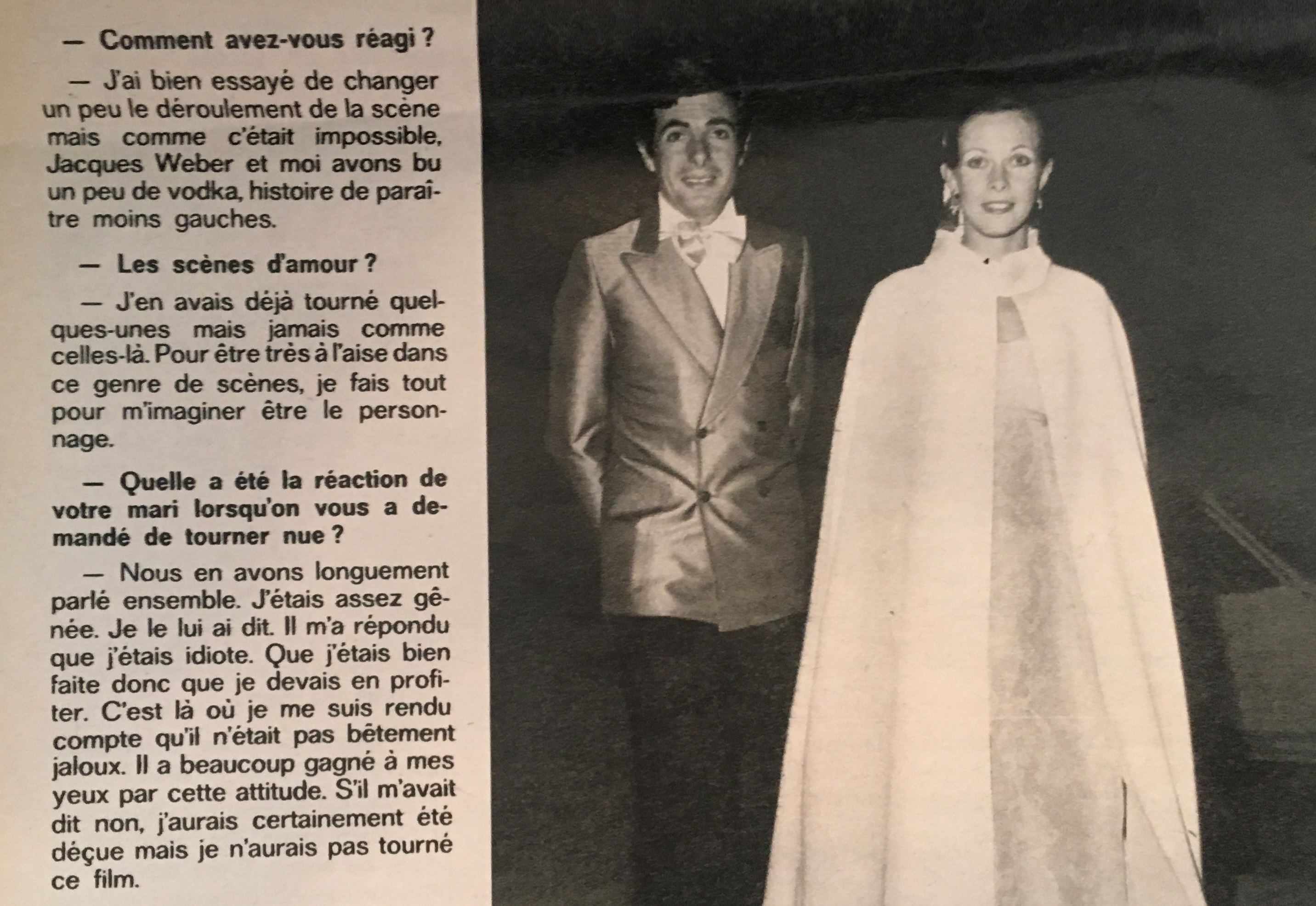 Vier Jahre zuvor hatte Claude Jade erklärt, sie müsse für eine derartige Entscheidung ihre Mentalität ändern. „Ich dachte immer, es schickt sich für eine ernsthafte Schauspielerin nicht, sich auszuziehen. Ich habe mich geirrt“, sagt sie der „Ciné Revue“.