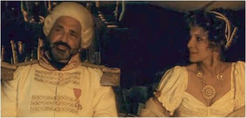 Jean Yanne als Kommandant Hugues Duroy de Chaumareys und Claude Jade als Reine Schmaltz in „Le Radeau de la Méduse“
