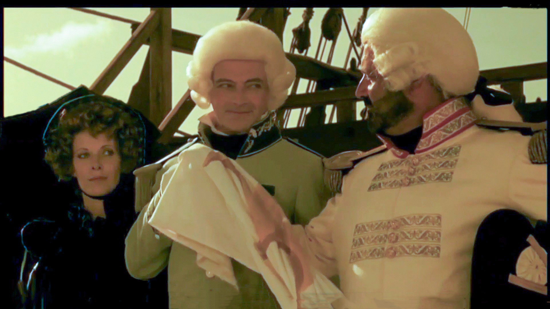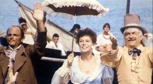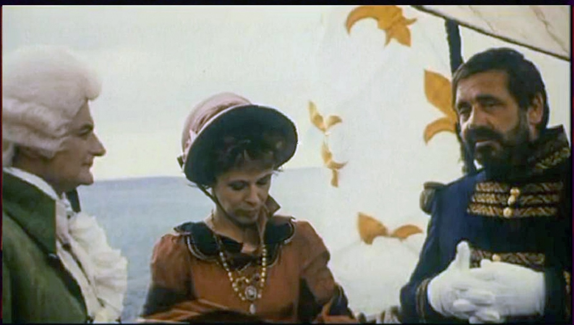 Jean Yanne als Kommandant Hugues Duroy de Chaumareys und Claude Jade als Reine Schmaltz in „Le Radeau de la Méduse“
