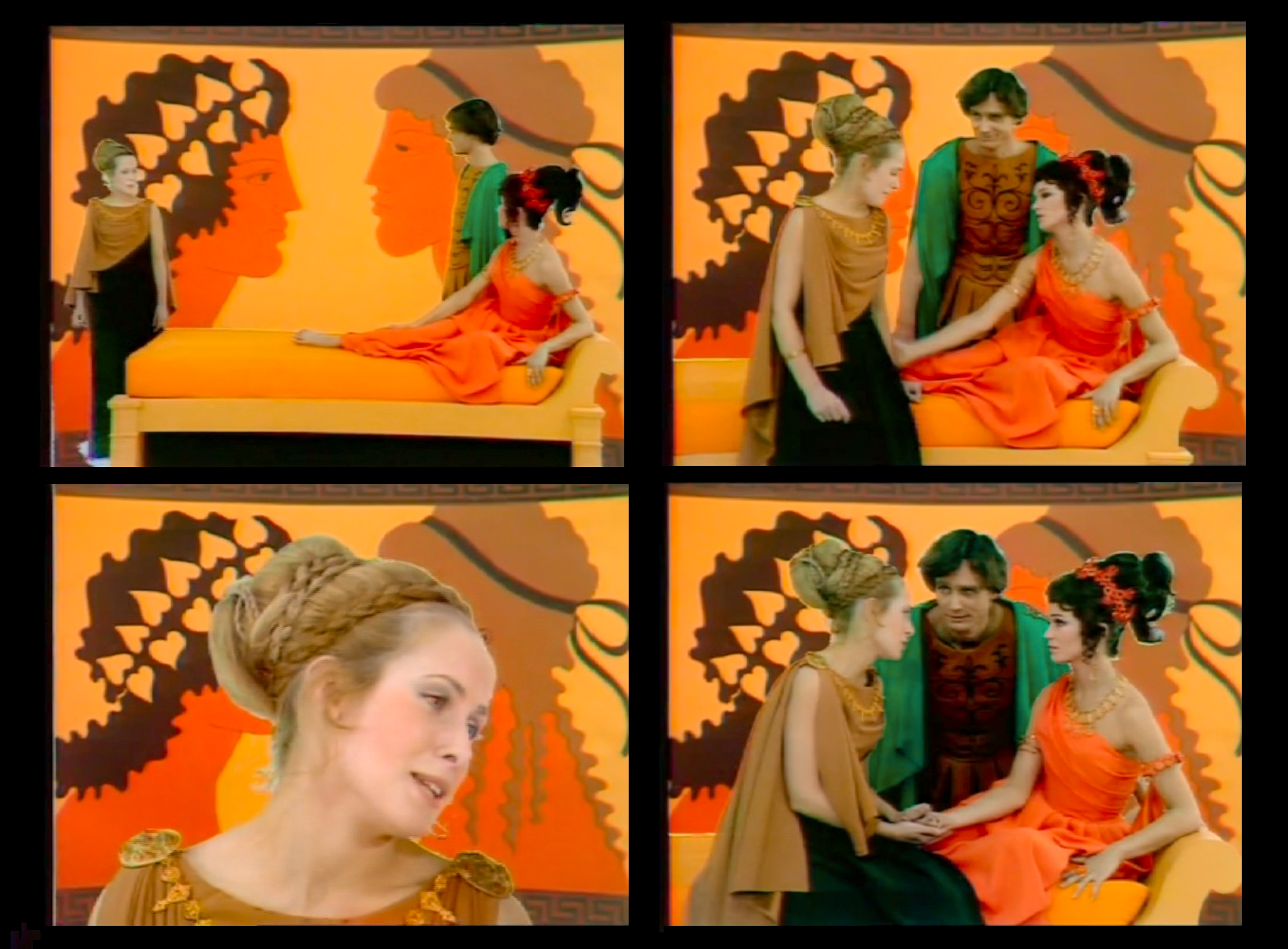 Helenas Monolog der Verzweiflung zeigt Averty nun in einem mal roten, mal grünem und dann blauem Medaillon, in dem Claude Jade tränenüberströmt direkt in das Auge der Kamera spielt, umrahmt von wechselnden Tarot-Karten und Herzen, die von Pfeilen getroffen werden. Wir erleben eine Schauspielerin, die sich als ungeliebte Helena hässlich fühlt und die dabei die Tragödie in der Komödie beherrscht. Wenn wir heute ihre gründlichen und klugen Aufzeichnungen ihres Theatergeschichte-Hefts während der ersten Jahre des Schauspielstudiums als Fünfzehn- und Sechszehnjährige am Konservatorium von Dijon betrachten, sehen wir in dieser Helena erneut das Resultat ihrer Ernsthaftigkeit in diesem verrückten Beruf.
