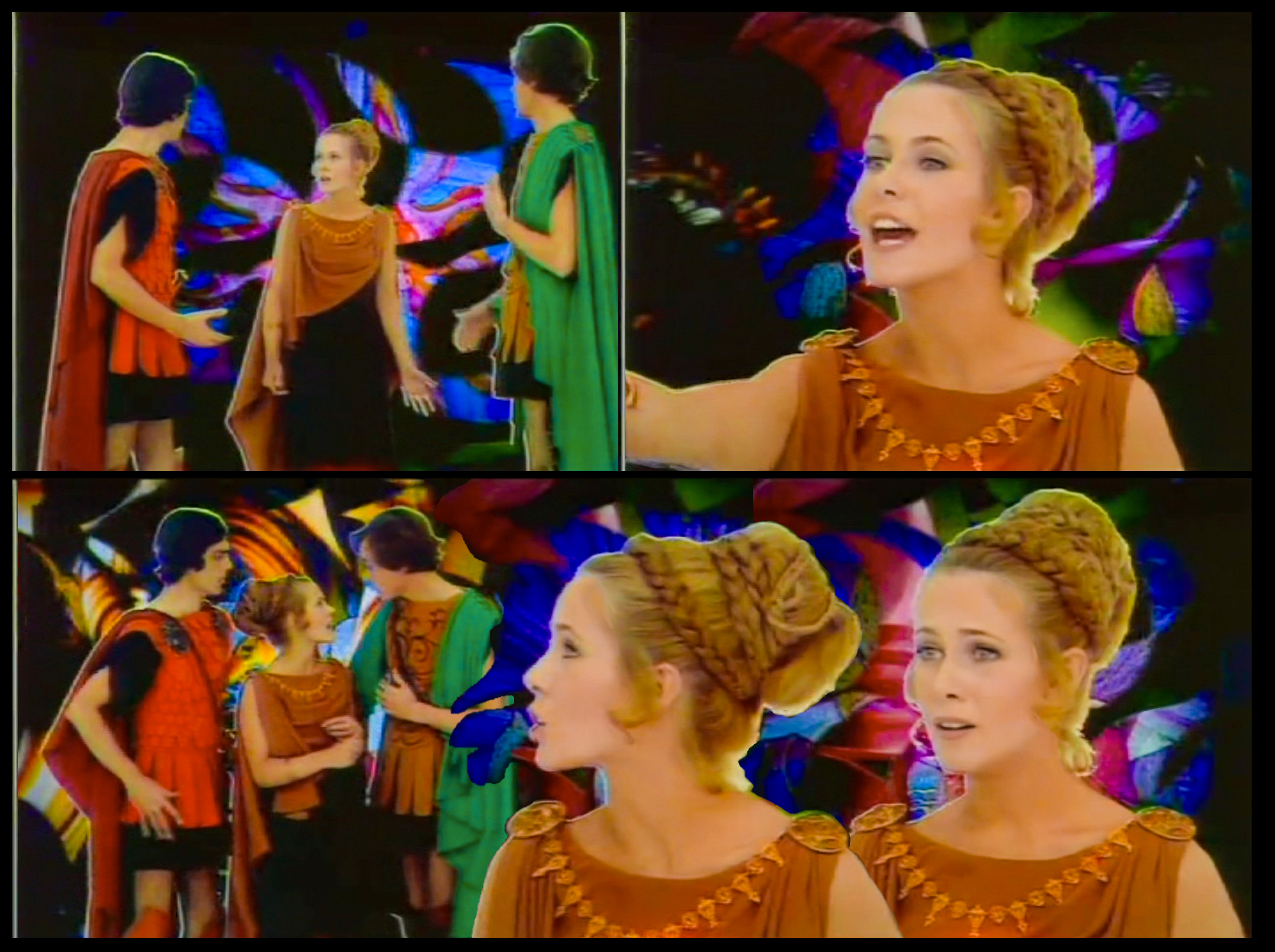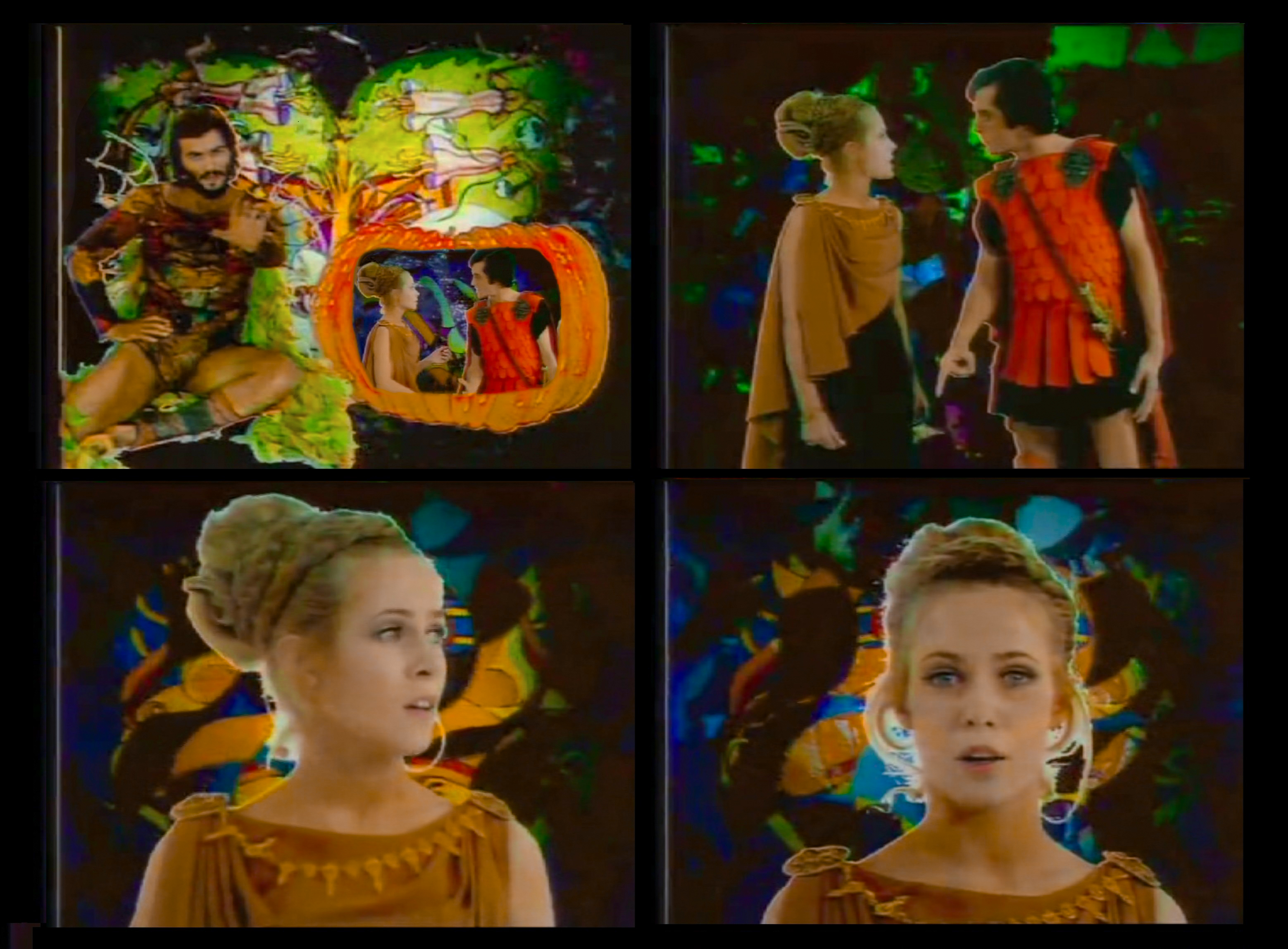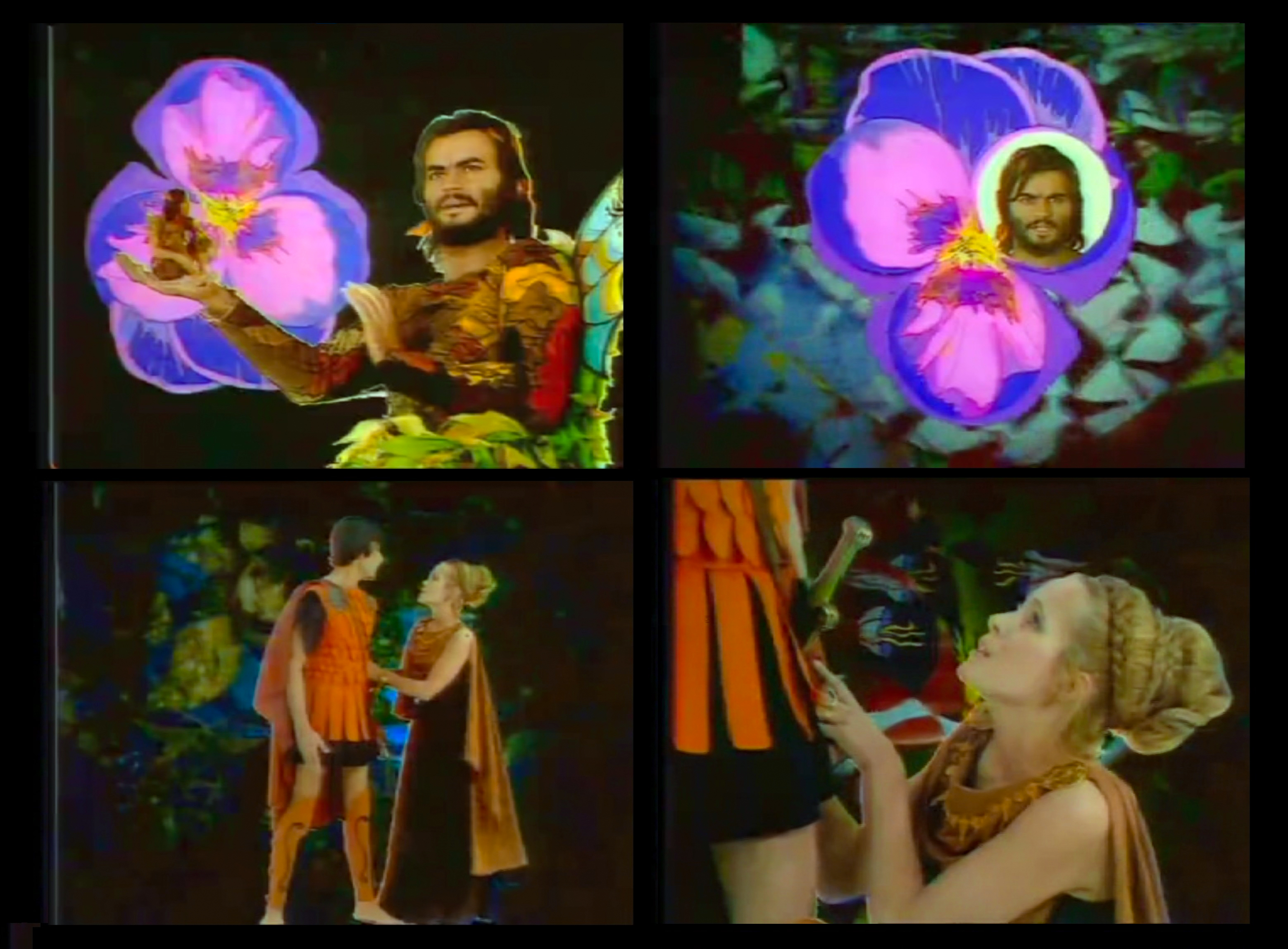 Der Wald, in dem die vier jungen Athener umherirren und die Aufmerksamkeit des Elfenkönigs Oberon wecken, ist ein flirrendes Kaleidoskop. Die sanfte Christine Darbon ist hinweggeweht, wenn Claude Jade sich als Helena verzeifelt vor die Füße Dominique Serinas wirft, ihn anschreit wie eine Ertrinkende und eine Furie zugleich. Bei Averty wird der Kürbis in Anspielung an die Kutsche aus Perraults Cendrillon zum Fernseher, in dem Oberon alles sieht.