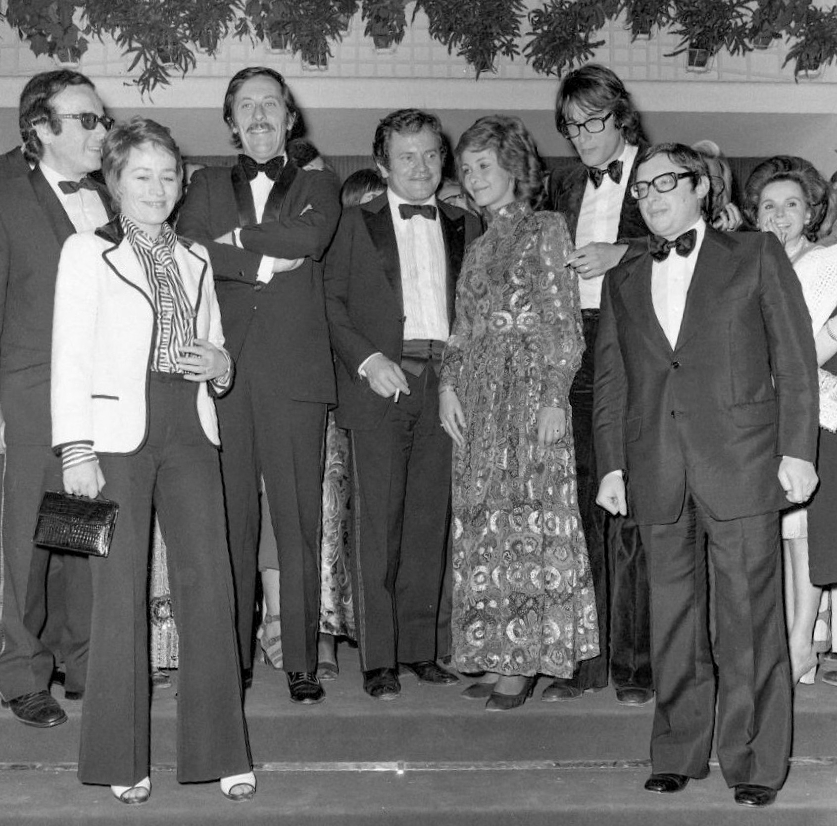 Michel Legrand, Annie Girardot, Jean Rochefort, Bernard Fresson, Claude Jade, Bernard Le Coq und Serge Korber in Cannes, Mai 1972