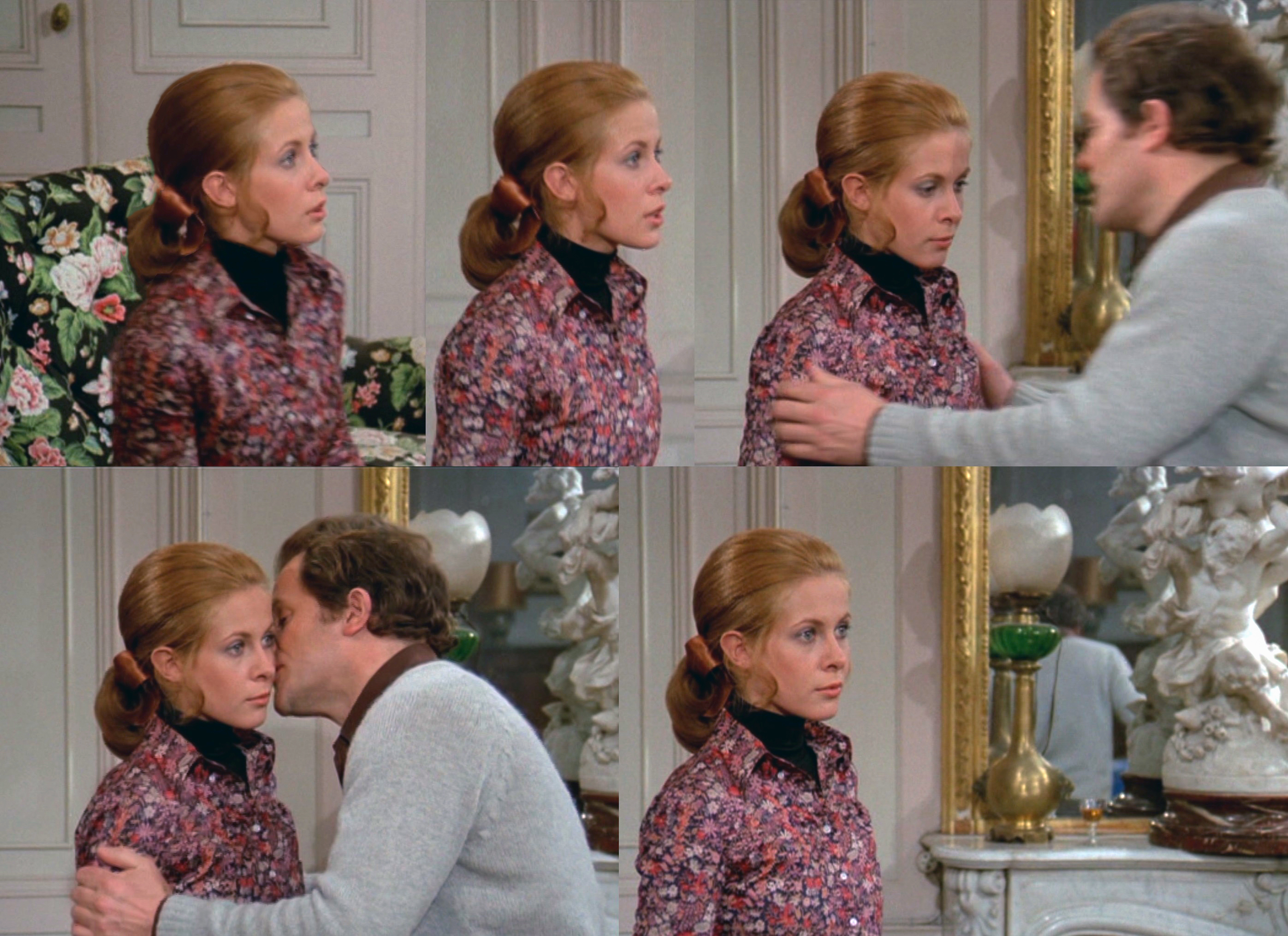 Laura hat von ihrem Vater ein Armband geschenkt bekommen. Ihre Mutter erkennt, dass es aussieht wie jenes, das sie selbst einst von ihm erhielt. Mutter und Tochter eint Verbundenheit. Ein Bild, das Marc bemerkt, der Laura dahin zum Abschied einen Kuss auf die Wange gibt. Die Kamera umkreist Claude Jade nach dem unvermittelt erfolgenden Kuss von Bernard Fresson, der wie eine Verzauberung auf die spröde Studentin hereinbricht. Ein einziger Kuss bringt Laura zum Straucheln. Weich und verträumt liegt sie nun in ihrem spitzenbesetzen Nachthemd wach und verfällt dem Muster ihrer Mutter: alles politische Engagement ist letztendlich unerfüllend, wenn der liebende Mann ausbleibt. Die Melodie Michel Legrands, hier zwischen der Poesie aus den „Parapluies de Cherborg“ und dem Pomp von „Un homme qui me plaît“, zuckert dieses wirklich edel gefilmte Bild von Claude Jade meisterhaft zu – und da sie von Legrand stammt, gelingt dies ohne in Kitsch zu verfallen. Und Claude Jade bleibt als Laura weiterhin selbstbewusst und verliert sich nicht in Marc.
