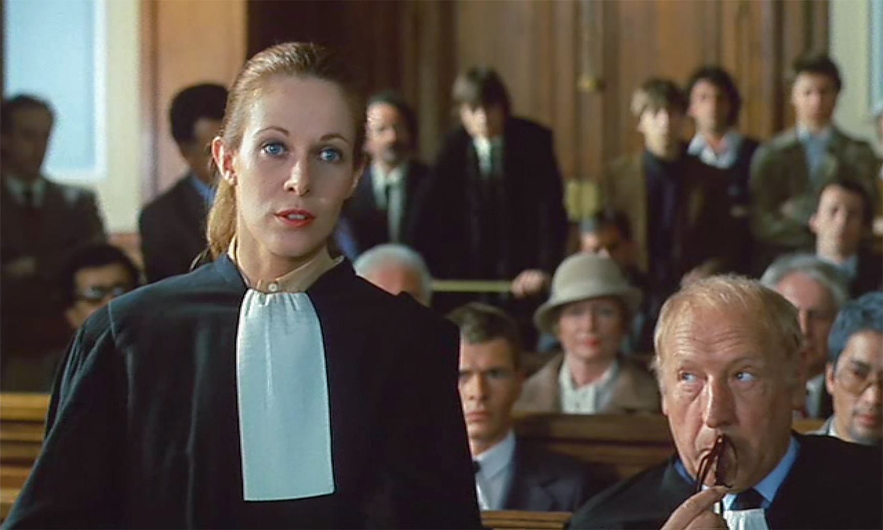 Maître Valouin wurde von der Witwe als Anwältin engagiert, doch zur Unterstützung kommt der Onkel der Witwe, ein Batonnier, mit zur Verhandlung. Den spielt ein monstre sacré des französischen Theaters, Georges Wilson, und den brillanten Gegner der Verteidigung gibt Charles Denner.