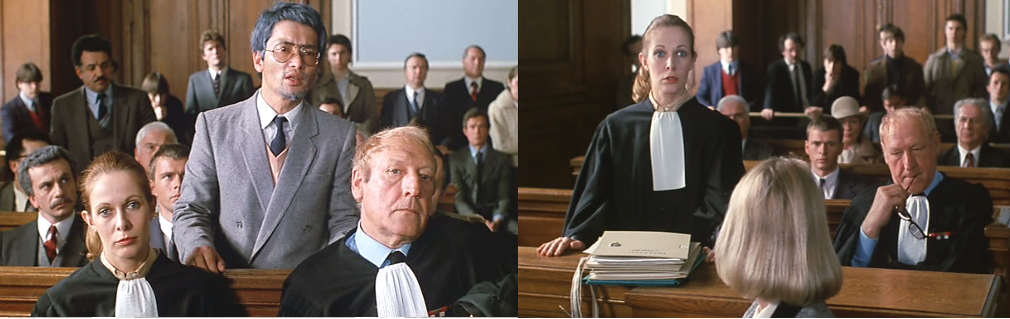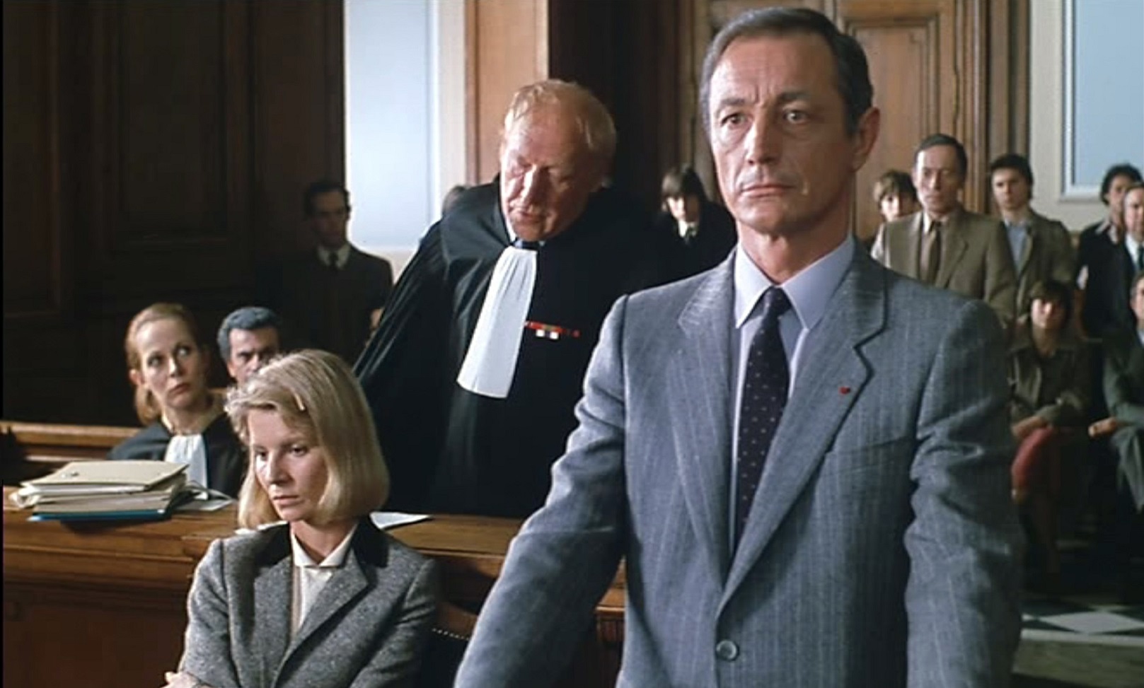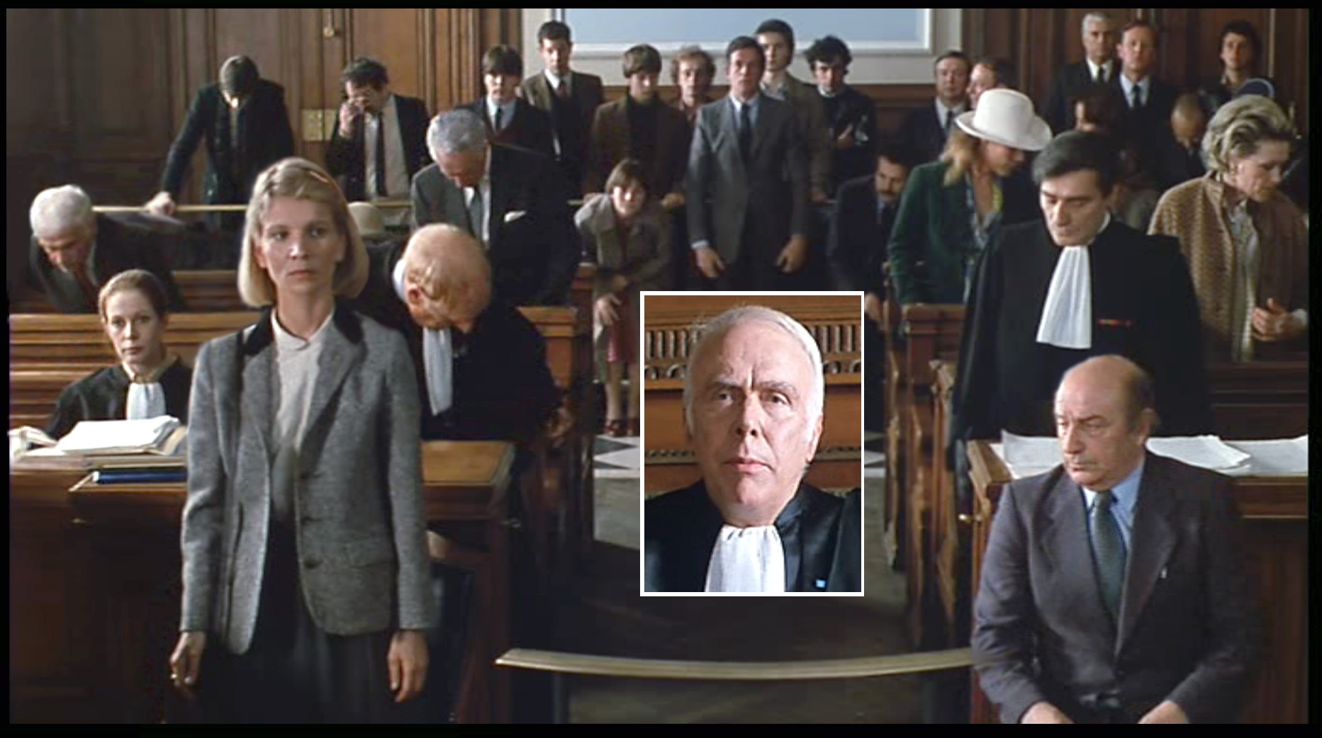 Maître Valouin wurde von der Witwe als Anwältin engagiert, doch zur Unterstützung kommt der Onkel der Witwe, ein Batonnier, mit zur Verhandlung. Den spielt ein monstre sacré des französischen Theaters, Georges Wilson, und den brillanten Gegner der Verteidigung gibt Charles Denner.