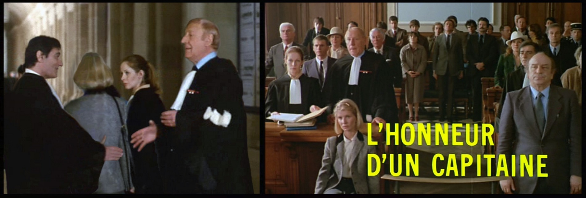 Auch der Gerichtssaal in „L’honneur d’un capitaine“ ist abgeschottet. Sie teilt ihn sich mit großen Schauspielern: In den Zeugenstand tritt unter anderem Georges Marchal, der neben Abenteuerfilmen mit vier Werken Luis Buñuels Weltruhm errang. Claude hatte mit Marchals Frau Dany Robin „Topas“ gedreht, als Marchal und Robin kurz vor der Scheidung standen und war kurz darauf Gast bei Robins Hochzeit mit deren zweitem Mann. 1979 hatte Marchal dann in „Die Insel der dreißig Tode“ den Vater von Claudes Heldin Véronique d’Hergemont gespielt.