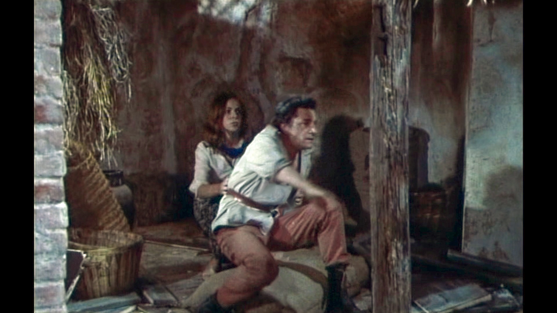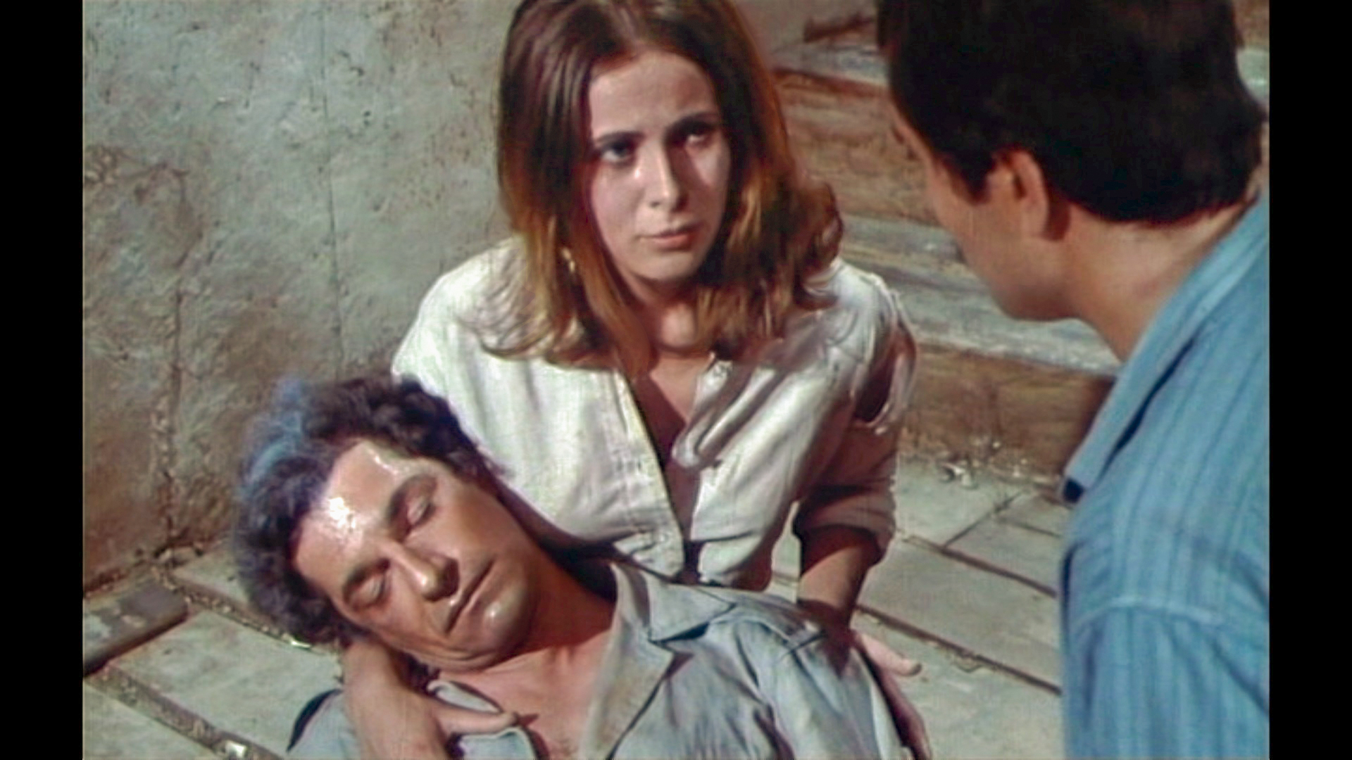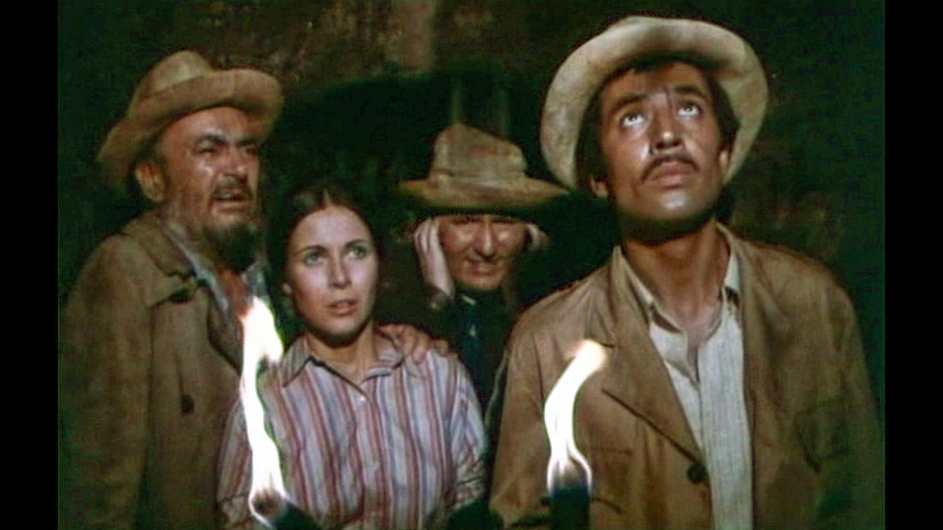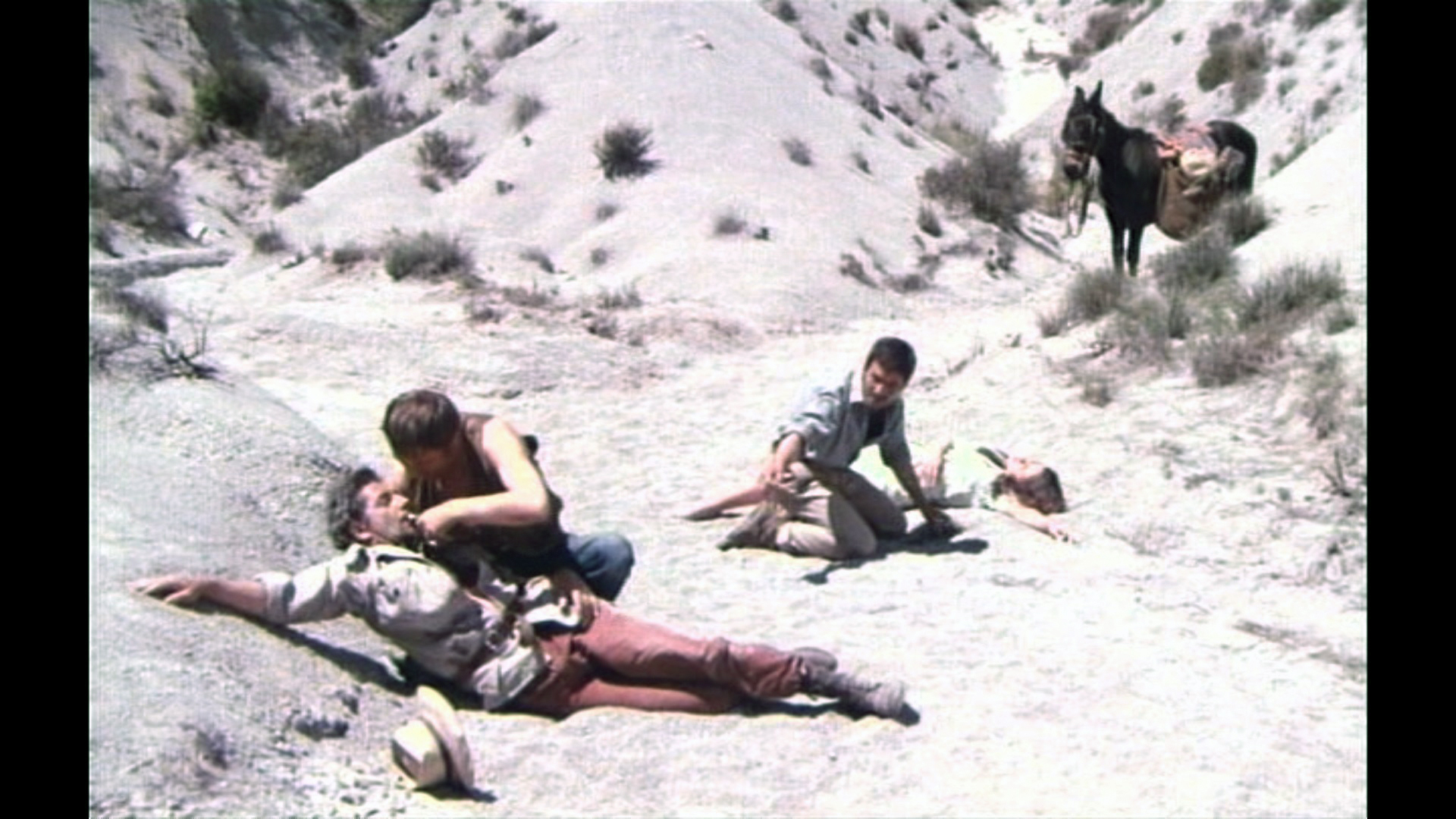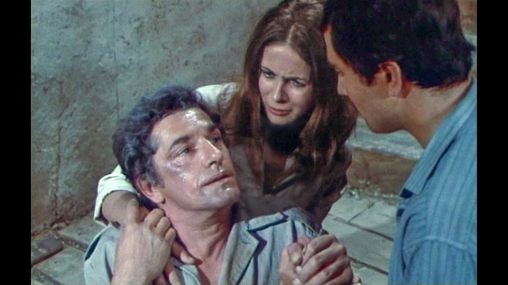 Claude Jade erscheint erst nach fast einer halben Stunde Laufzeit – ohnmächtig neben einem Maultier auf weißem Sand liegend, wird sie in karger Felslandschaft vom tapferen Helden entdeckt. Als ihre Lippen vom Wasser aus einer Feldflasche benetzt werden, öffnet sie die Augen, wird von Paul Barge hochgehoben und in Sicherheit getragen, eben so wie ein gerettetes Mädchen im klassischen Abenteuerfilm vom Helden auf dessen Heldenarmen getragen wird.