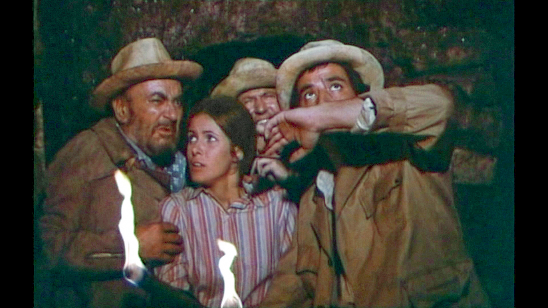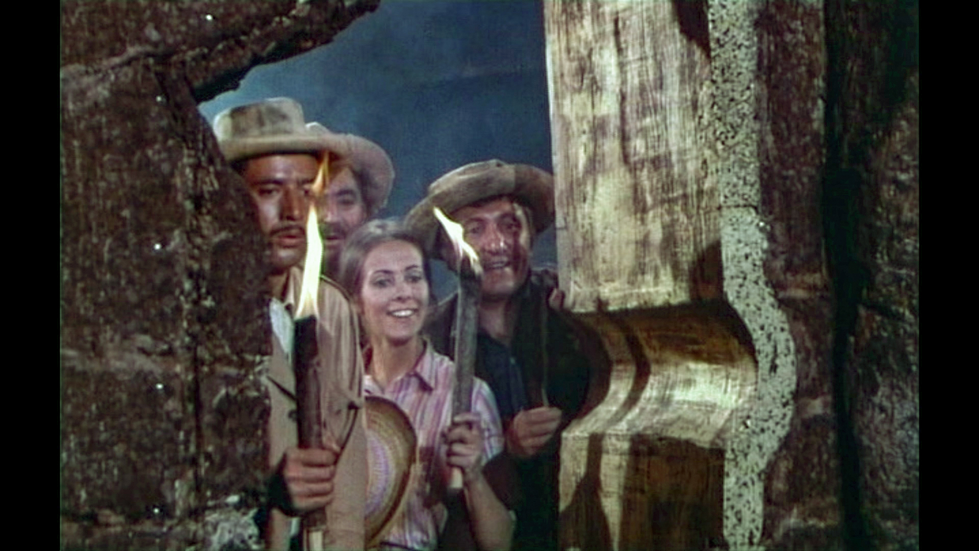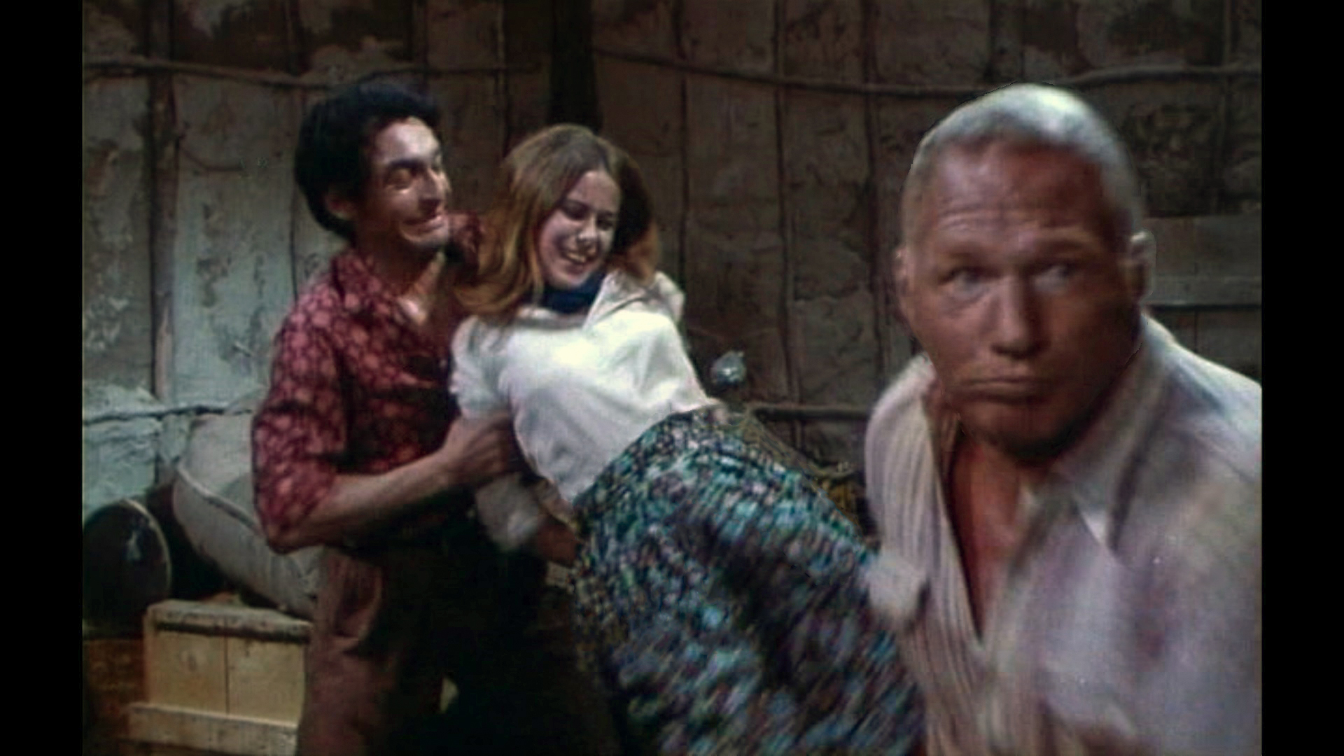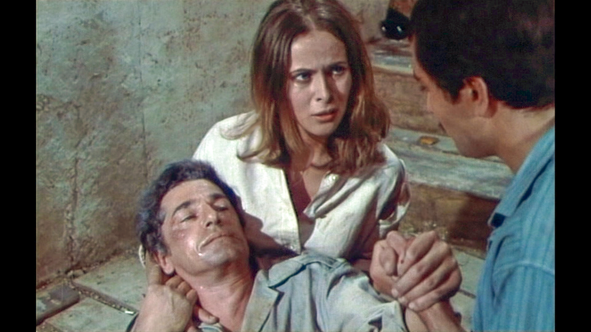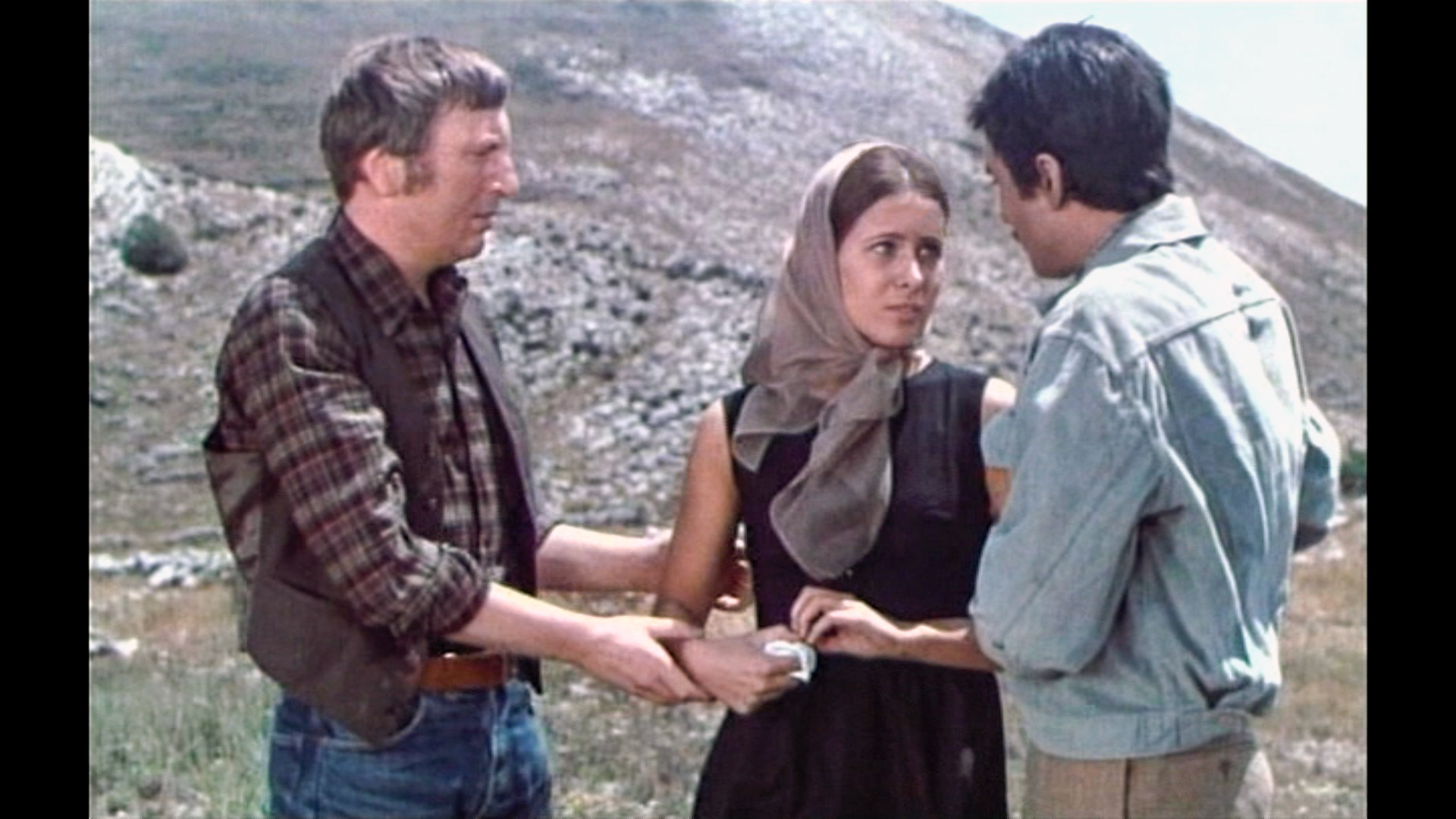 Claude Jade erscheint erst nach fast einer halben Stunde Laufzeit – ohnmächtig neben einem Maultier auf weißem Sand liegend, wird sie in karger Felslandschaft vom tapferen Helden entdeckt. Als ihre Lippen vom Wasser aus einer Feldflasche benetzt werden, öffnet sie die Augen, wird von Paul Barge hochgehoben und in Sicherheit getragen, eben so wie ein gerettetes Mädchen im klassischen Abenteuerfilm vom Helden auf dessen Heldenarmen getragen wird.