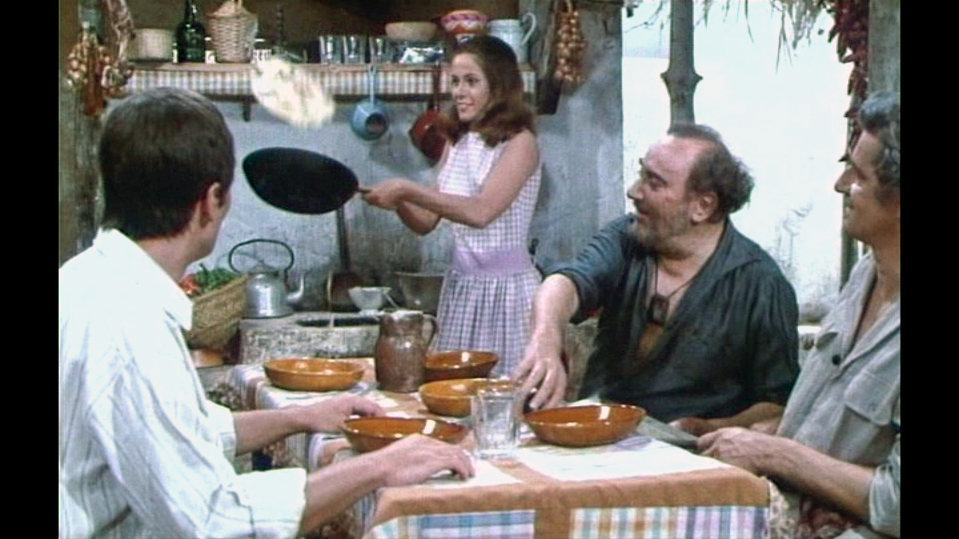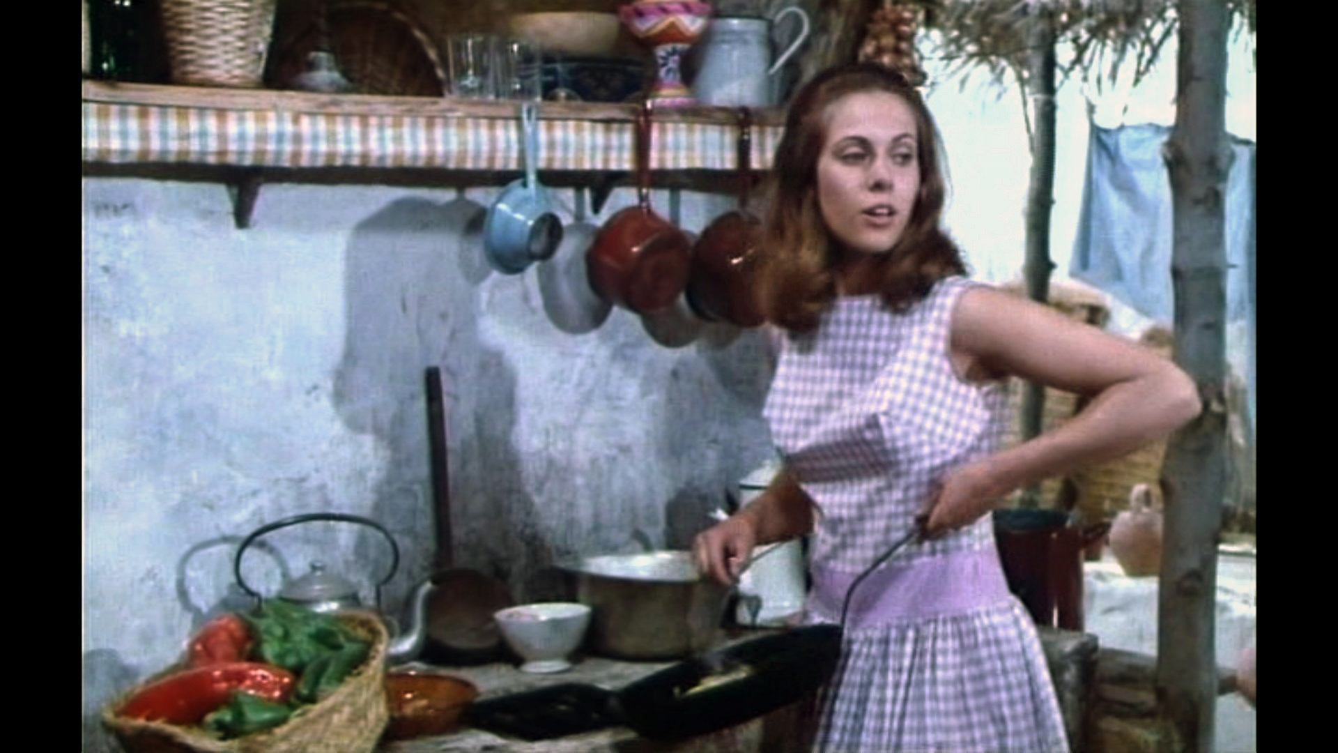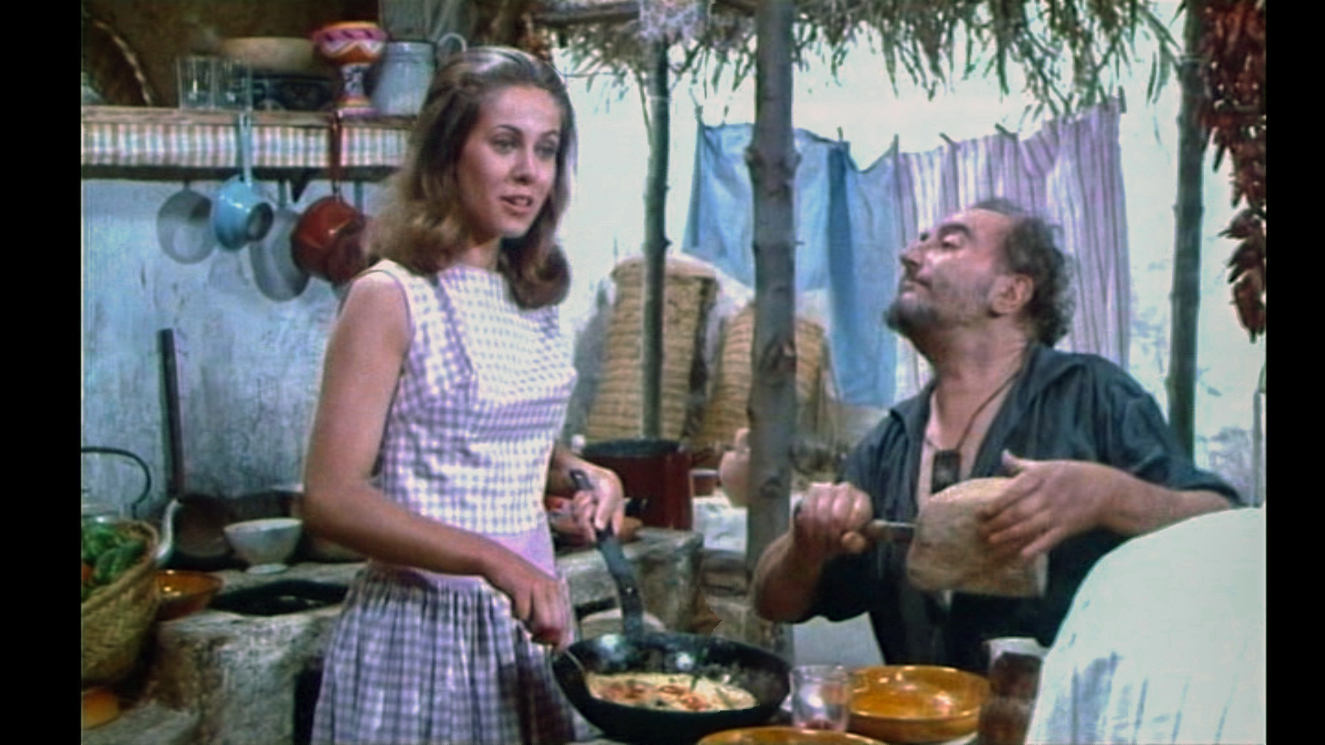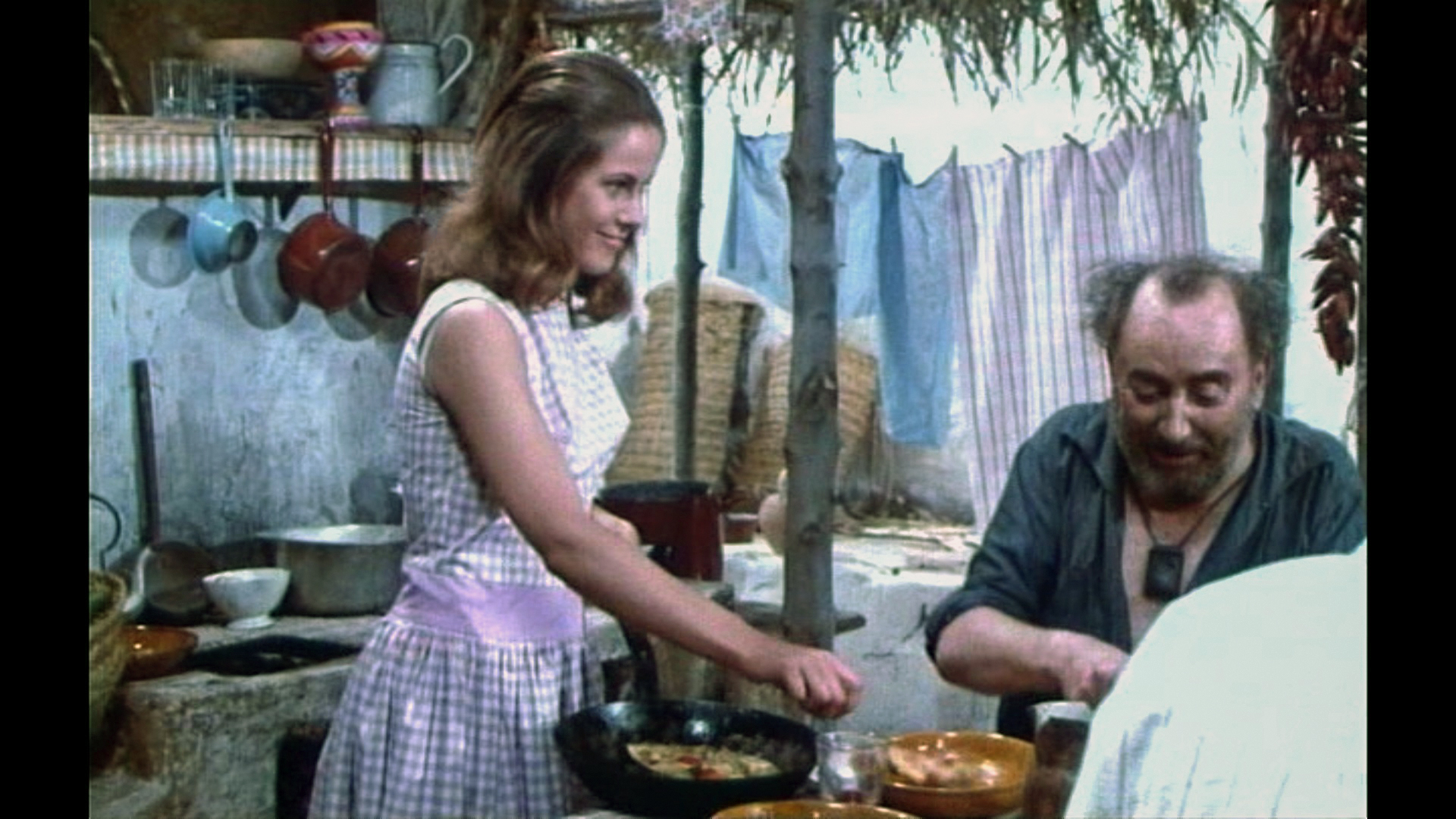 Und um die Verwechslung der beiden Abenteuerfilm-Heldinnen wieder aufzugreifen: Lindas rasche Genesung gleicht der von Dorléacs Agnès in „Abenteuer in Rio„; das gerade noch entkräftete Mädchen ist im Schnitt zur nächsten Szene putzmunter. Claude Jade erweist sich als Neuling in der kleinen Bande von Abenteurern als praktisch veranlagt und bereitet den Männern – gekonnt mit einer Pfanne jonglierend – einen Stapel Omelettes, dabei fröhlich giggelnd.