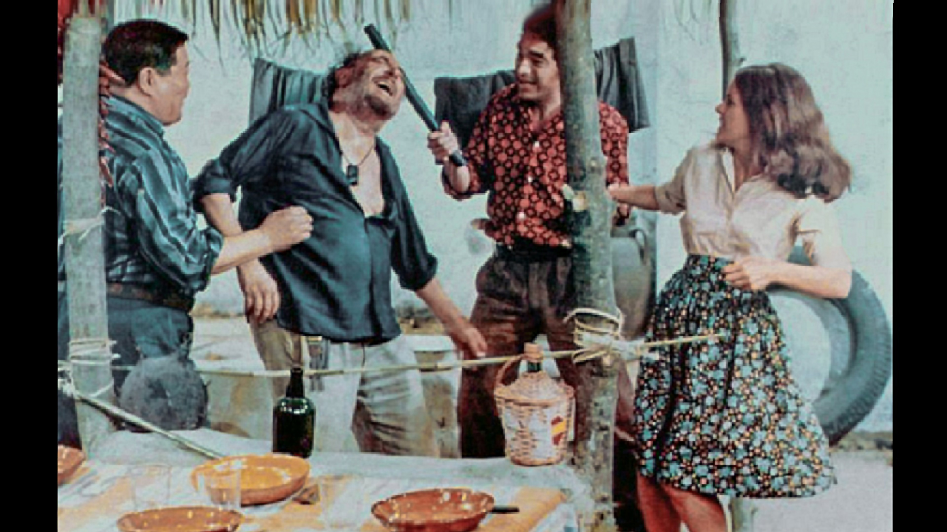 Wenn Claude Jade in trostloser Steppe und zu an Morricone angelehnten Klängen an einem notdürftig errichteten Grab den Toten betrauert – in Schwarz mit einem Kopftuch im heißen Steppenwind, gleicht sie einer typischen Eurowesternheldin wie Marianne Koch in „Für eine Handvoll Dollar“. Und ist dabei doch eine Kindfrau, denn nun hat sie drei Beschützer, die sich um ihr Wohl sorgen – allen voran Pierre Brasseur als zerlumpter Bonvivant Faria, der ihretwegen sogar mit dem Trinken aufhört. Brasseur selbst denkt nicht daran – in den Pausen zwischen den Aufnahmen füllt er seinem zuvor mit Wasser gestreckten Bordeaux immer wieder ein wenig Wein hinzu.