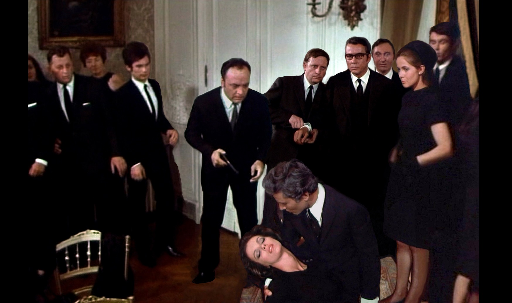 Morcerf (Raymond Pellegrin) kondoliert Linda (Claude Jade). Im Hintergrund: Anny Duperey