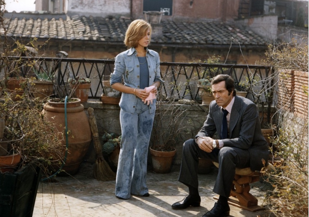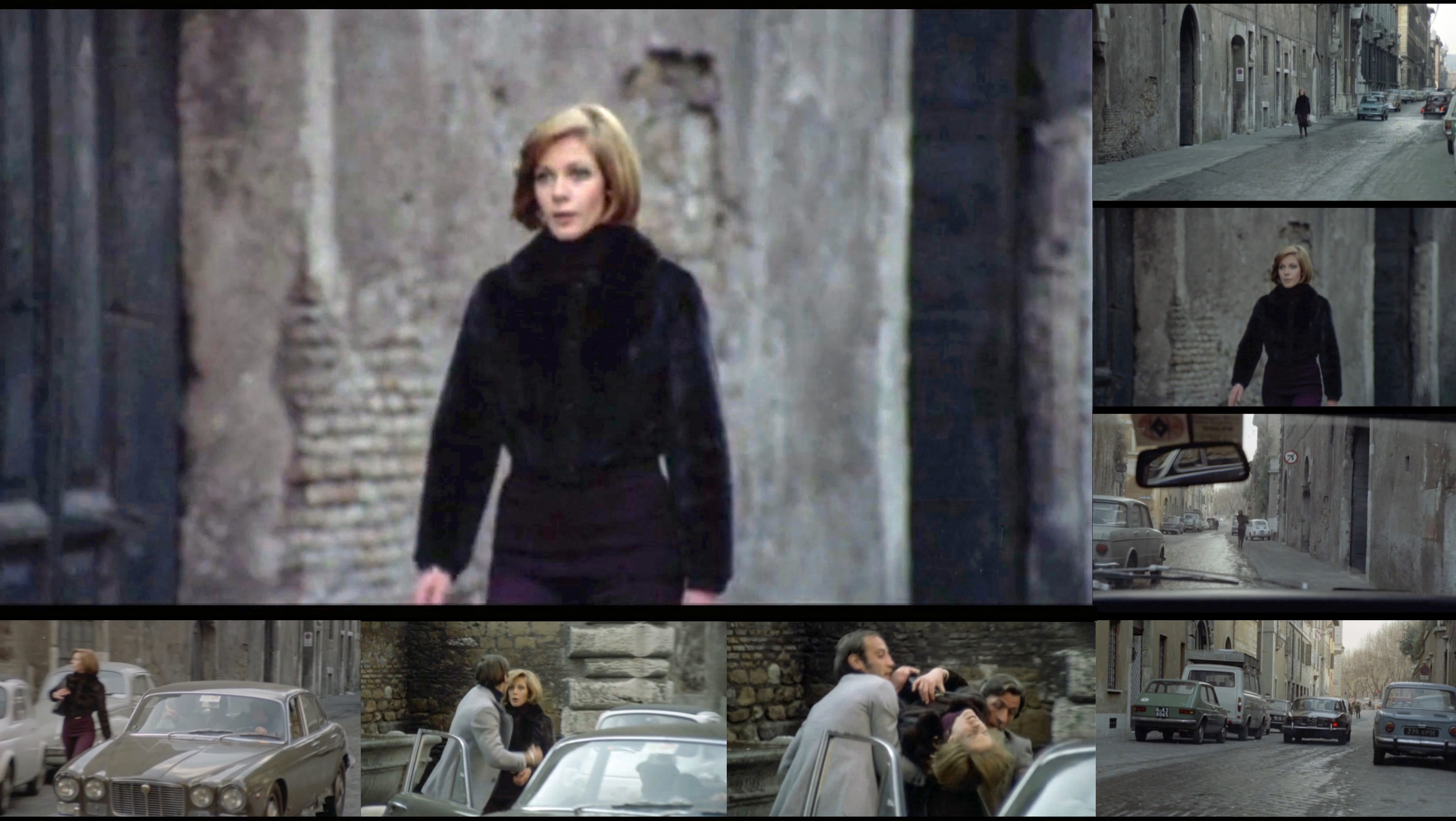 „La ragazza di via Condotti“ beginnt wie ein typischer Giallo. Und Germán Lorente gibt sich Mühe mit der Farbdramaturgie: Am Tatort, an dem gelbe Tulpen aus einer Vase ins Bild ragen, ruft Sandro mit einem gelben Telefon die Polizei; das Auto, aus dem Frederick Stafford und Claude Jade kurz darauf ein Grundstück observieren, ist knallgelb. Und später trägt Claude Jade eine gelbe Bluse zu ihren Jeans.
