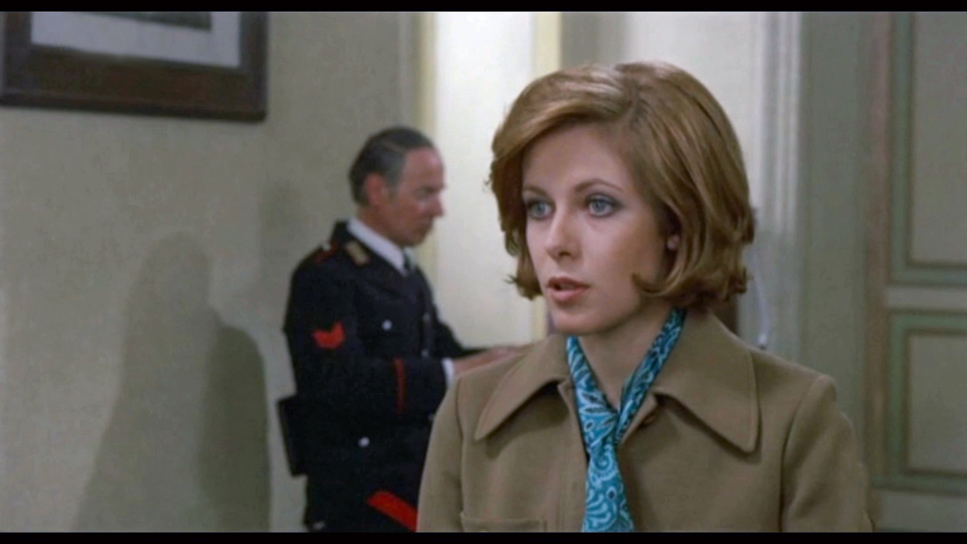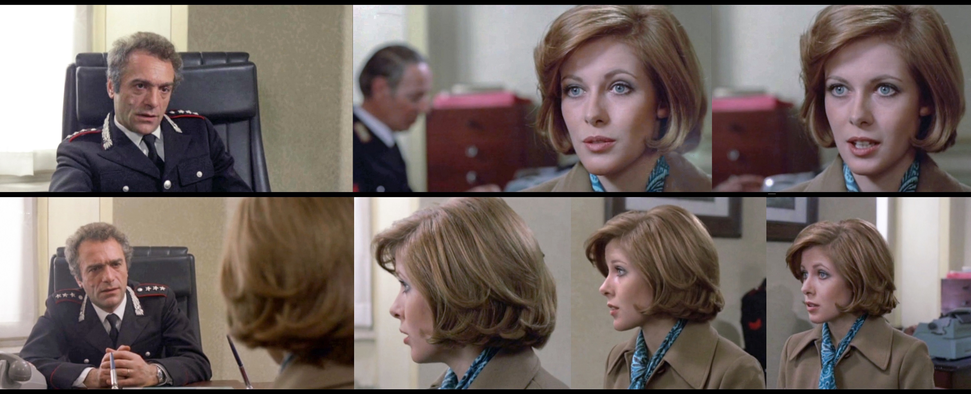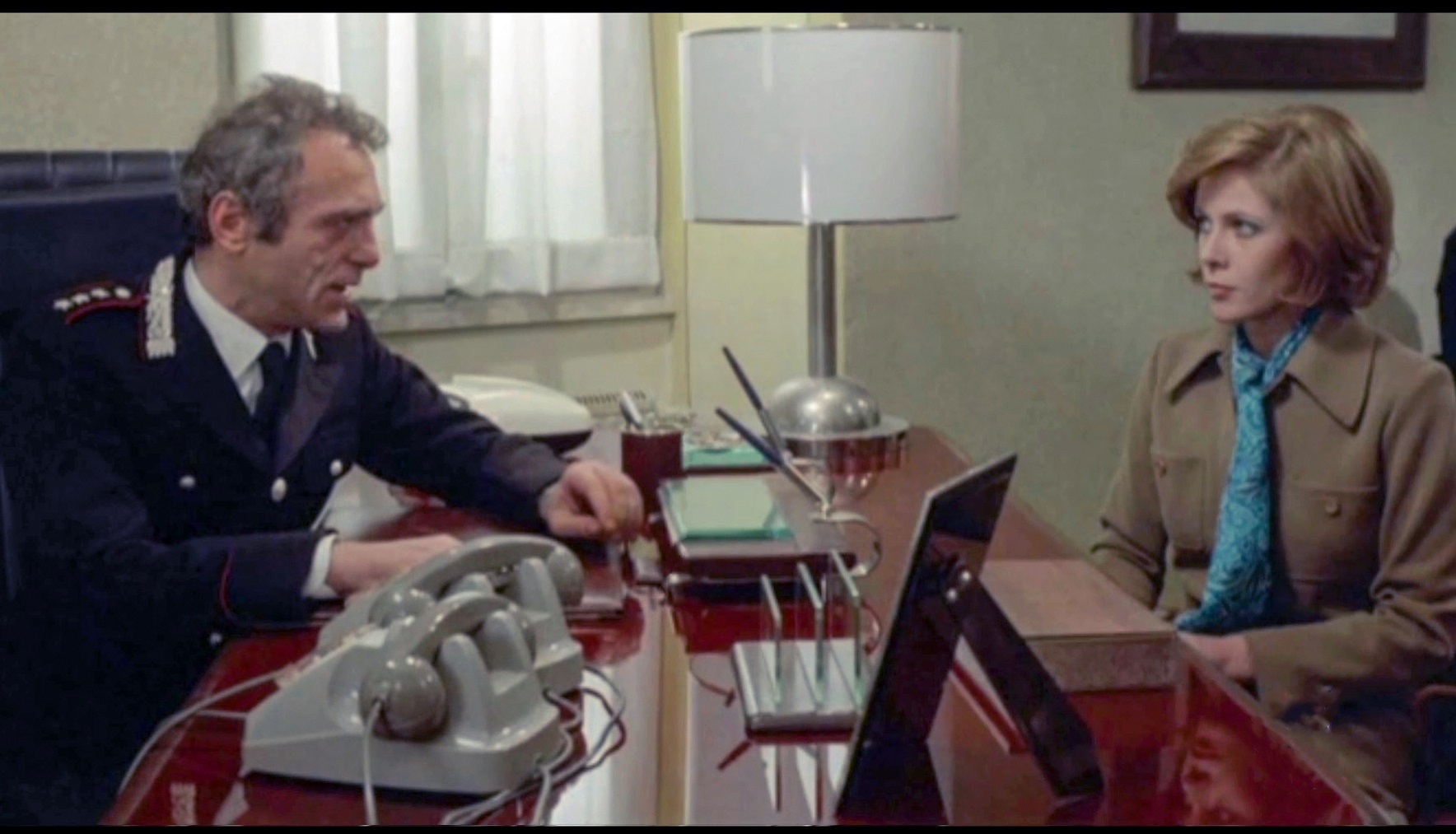 Zum Kunstraub will sich Sylvie nicht mehr äußern, als sie den Capitano aufsucht – und Claude Jade wieder in einem etwas lächerlichen Wechsel aus Französisch und Italienisch sprechen muss – oder besser: synchronisiert wird – der überdeutlich machen soll, wie verunsichert Sylvie wieder ist. Oder ihr, so Alessandro Continenza es in seinen Dialogen beabsichtigt hat, beim Lügen die Worte der Fremdsprache schwerer fallen, wie es bei Jane Birkins Louise Bourget in der 1978er Agatha-Christie-Verfilmung „Tod auf dem Nil“ der Fall ist, einer Zeugin, die sich im Verhör ähnlich ungeschickt anstellt wie Claude Jades Sylvie Boisset. Nein, sie habe nicht mit den Karabinieri telefoniert und könne sich nicht zu einem Kunstraub äußern.
