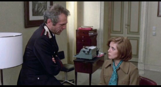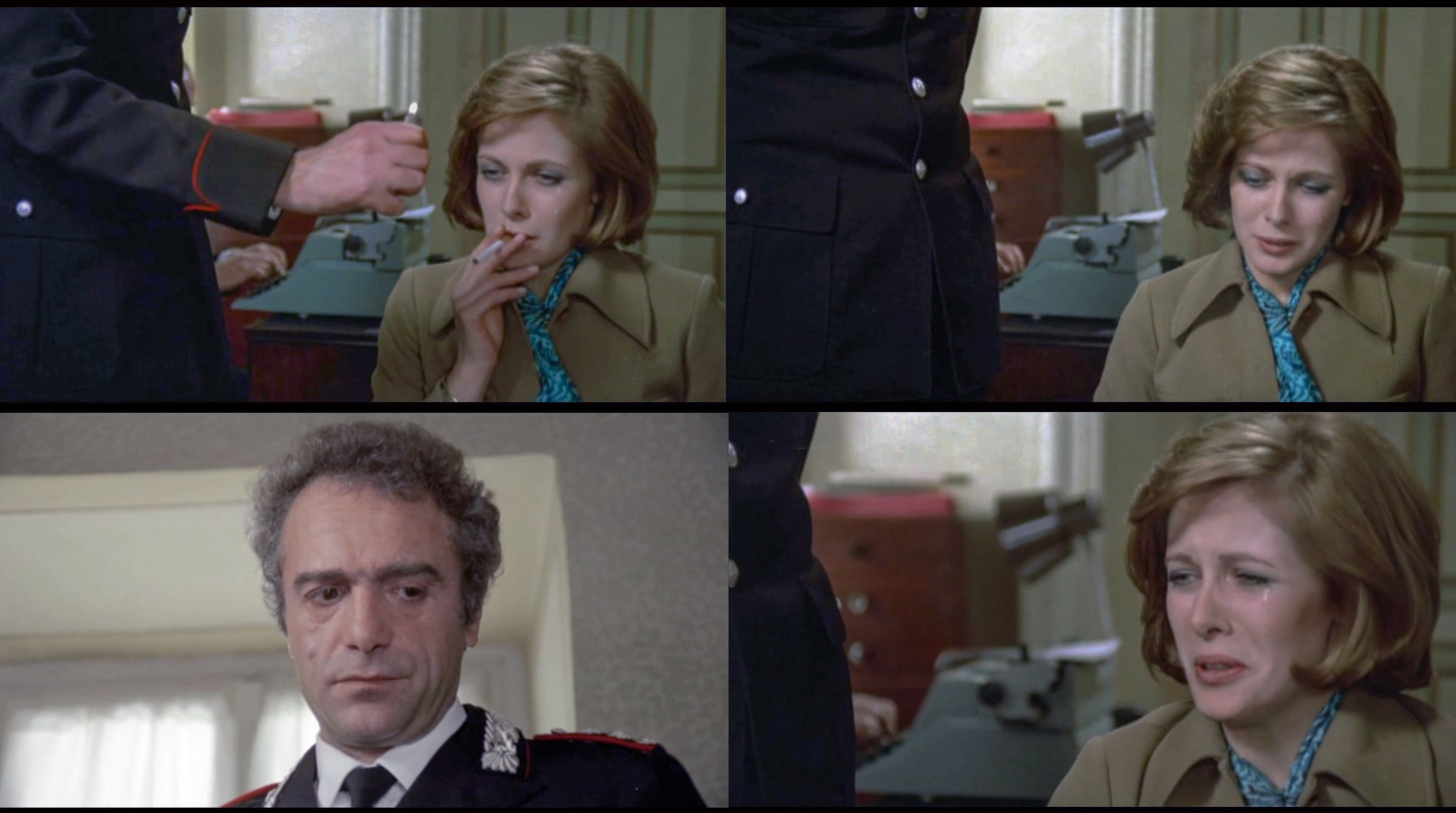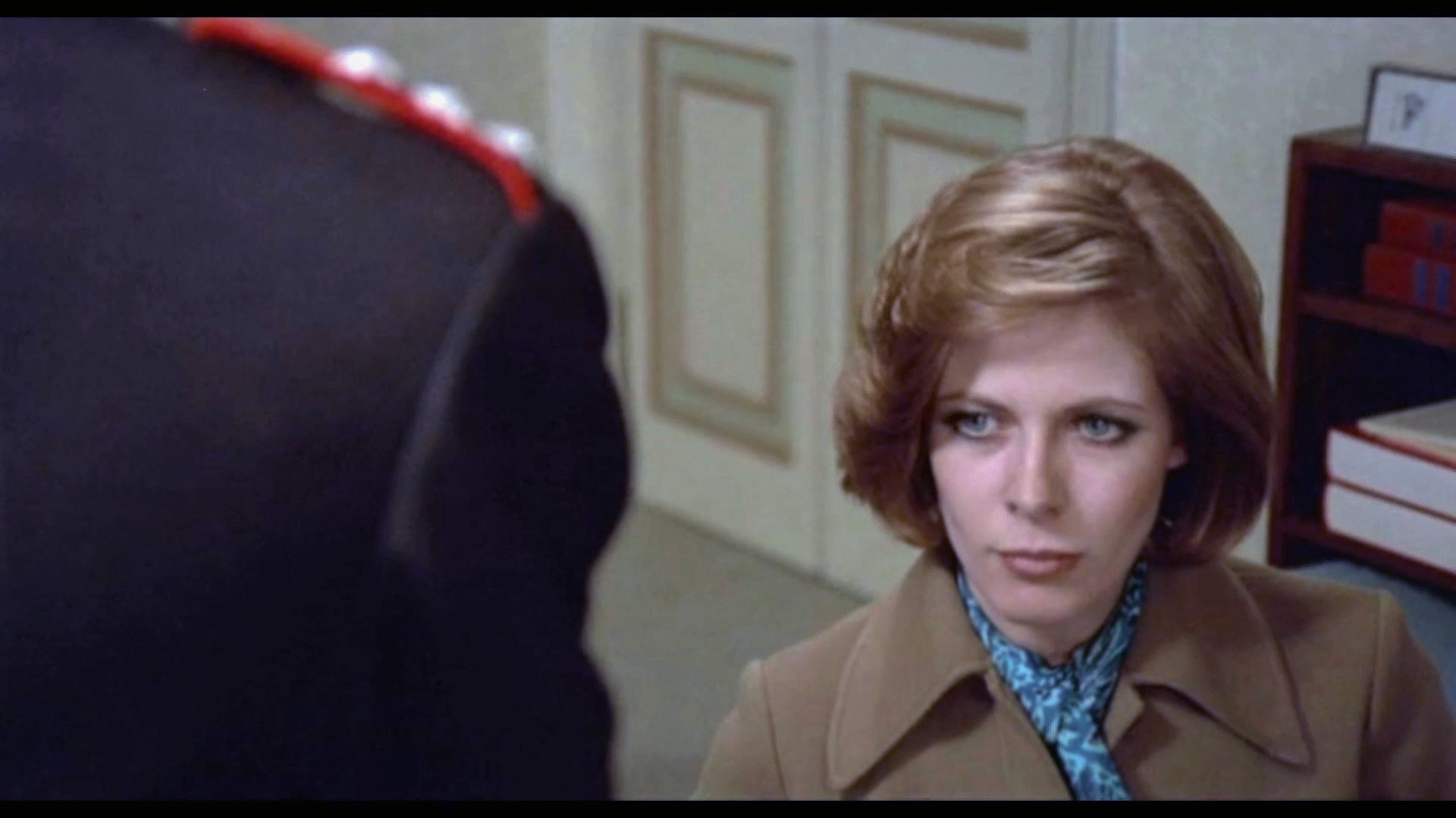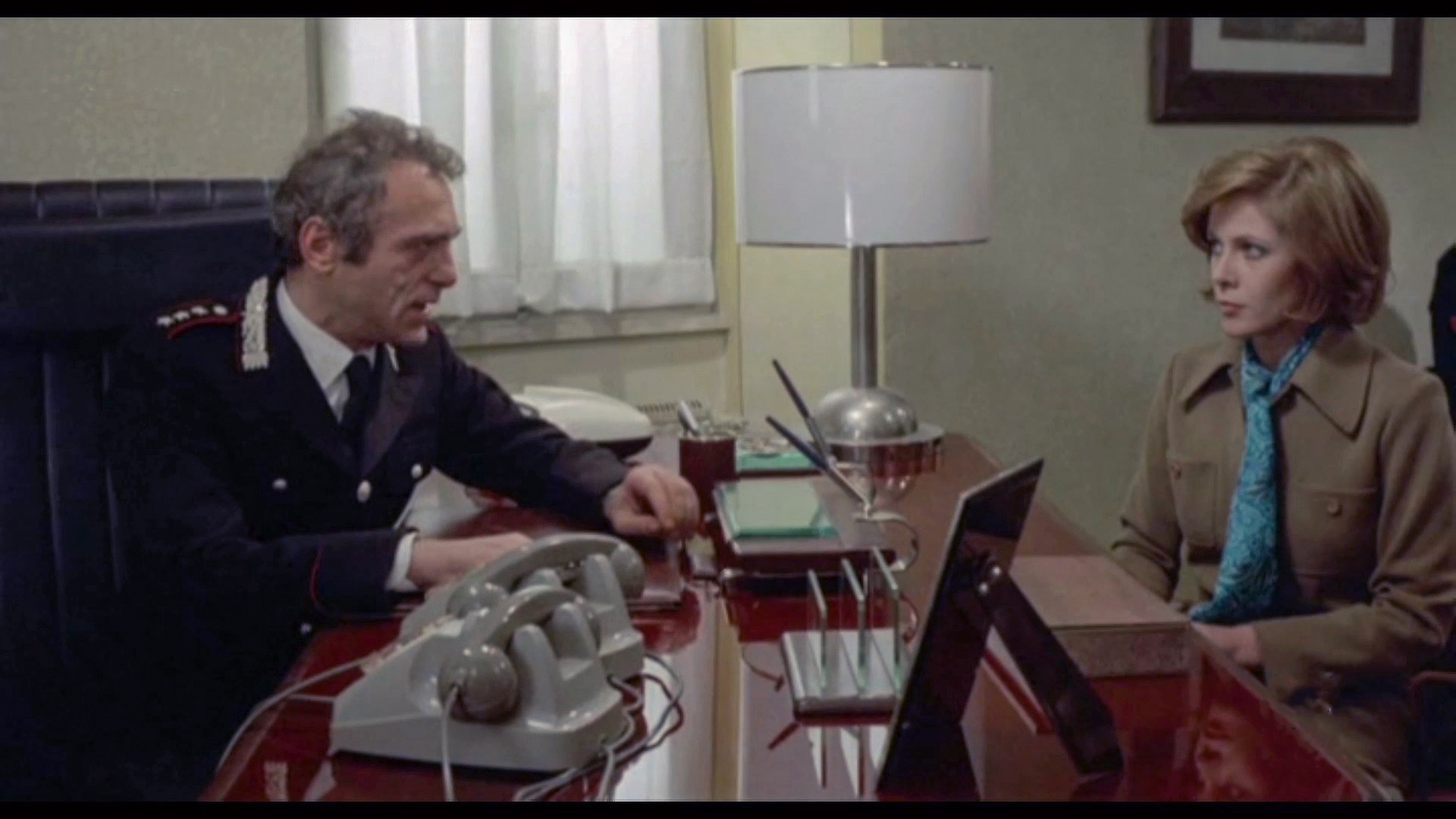 Zum Kunstraub will sich Sylvie nicht mehr äußern, als sie den Capitano aufsucht – und Claude Jade wieder in einem etwas lächerlichen Wechsel aus Französisch und Italienisch sprechen muss – oder besser: synchronisiert wird – der überdeutlich machen soll, wie verunsichert Sylvie wieder ist. Oder ihr, so Alessandro Continenza es in seinen Dialogen beabsichtigt hat, beim Lügen die Worte der Fremdsprache schwerer fallen, wie es bei Jane Birkins Louise Bourget in der 1978er Agatha-Christie-Verfilmung „Tod auf dem Nil“ der Fall ist, einer Zeugin, die sich im Verhör ähnlich ungeschickt anstellt wie Claude Jades Sylvie Boisset. Nein, sie habe nicht mit den Karabinieri telefoniert und könne sich nicht zu einem Kunstraub äußern.