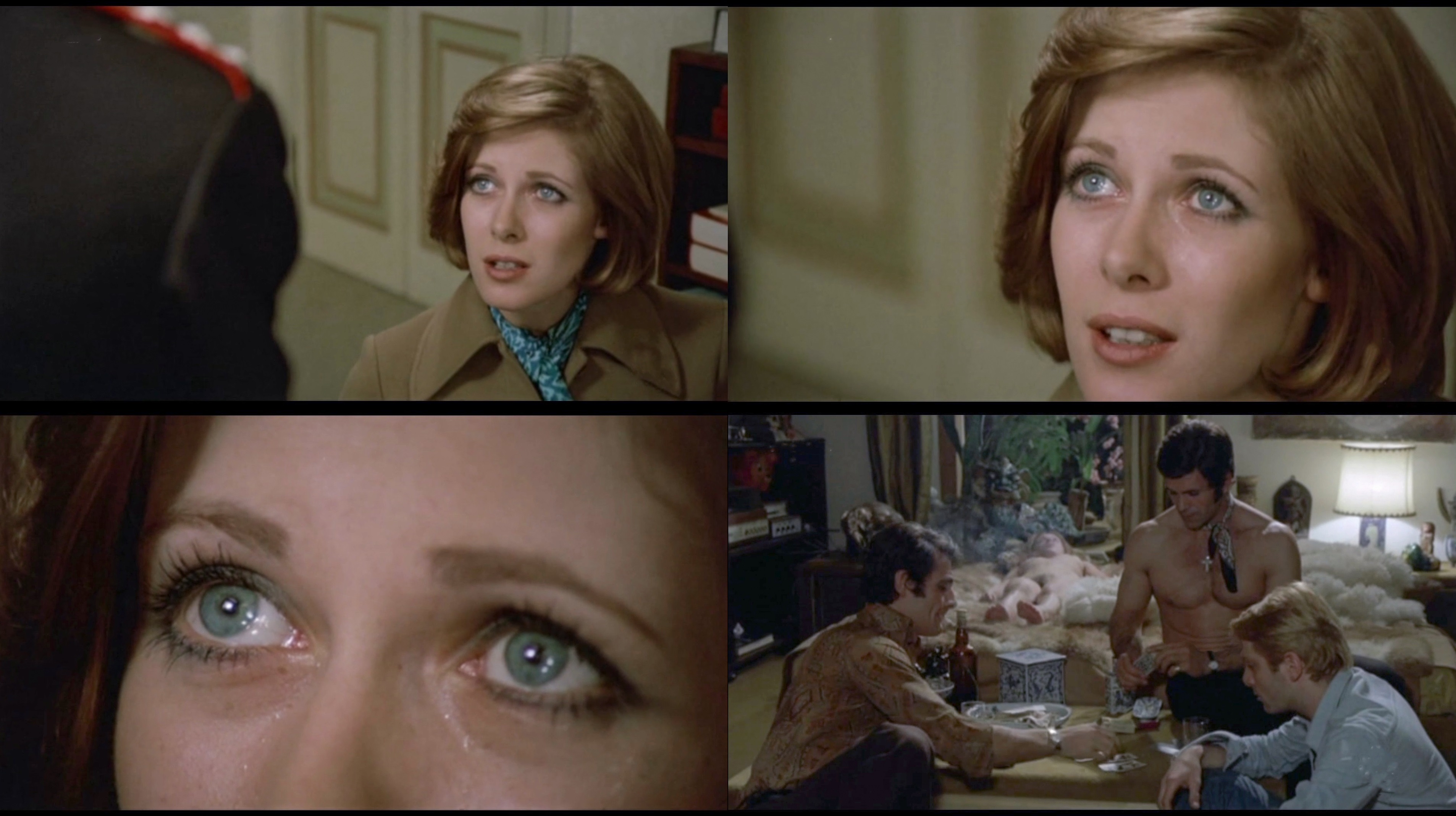 Als der Capitano der zitternden Sylvie die Zigarette anzündet, kann sie nur einmal nervös daran ziehen, um dann weinend zu gestehen: „Ich habe Angst vor allen und vertraue niemandem mehr, nicht einmal Ihnen!“. Wie bereits in der ersten Rückblende zoomt die Großaufnahme von Claude Jades Gesicht auf ihre Augen und unter Sylvies Bericht zur Nacht des Todes zeigt Buffardi mit Sylvies Schilderung auch seine Sicht. Teddy kommt mit Dino und Massimo heim, wo die sterbende Deborah nach einer Überdosis Heroin auf dem Bett liegt: nackt, sich wälzend, an den Hals greifend, weißer Schaum kommt immer wieder aus ihrem Mund. Die Männer entscheiden sich, Karten zu spielen, bis Deborahs Todeskampf vorbei ist.