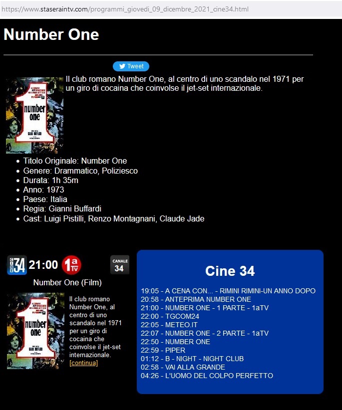 Link zum Filmfestival: Numer One (1973) auf dem 39. Torino Film Festival 2021