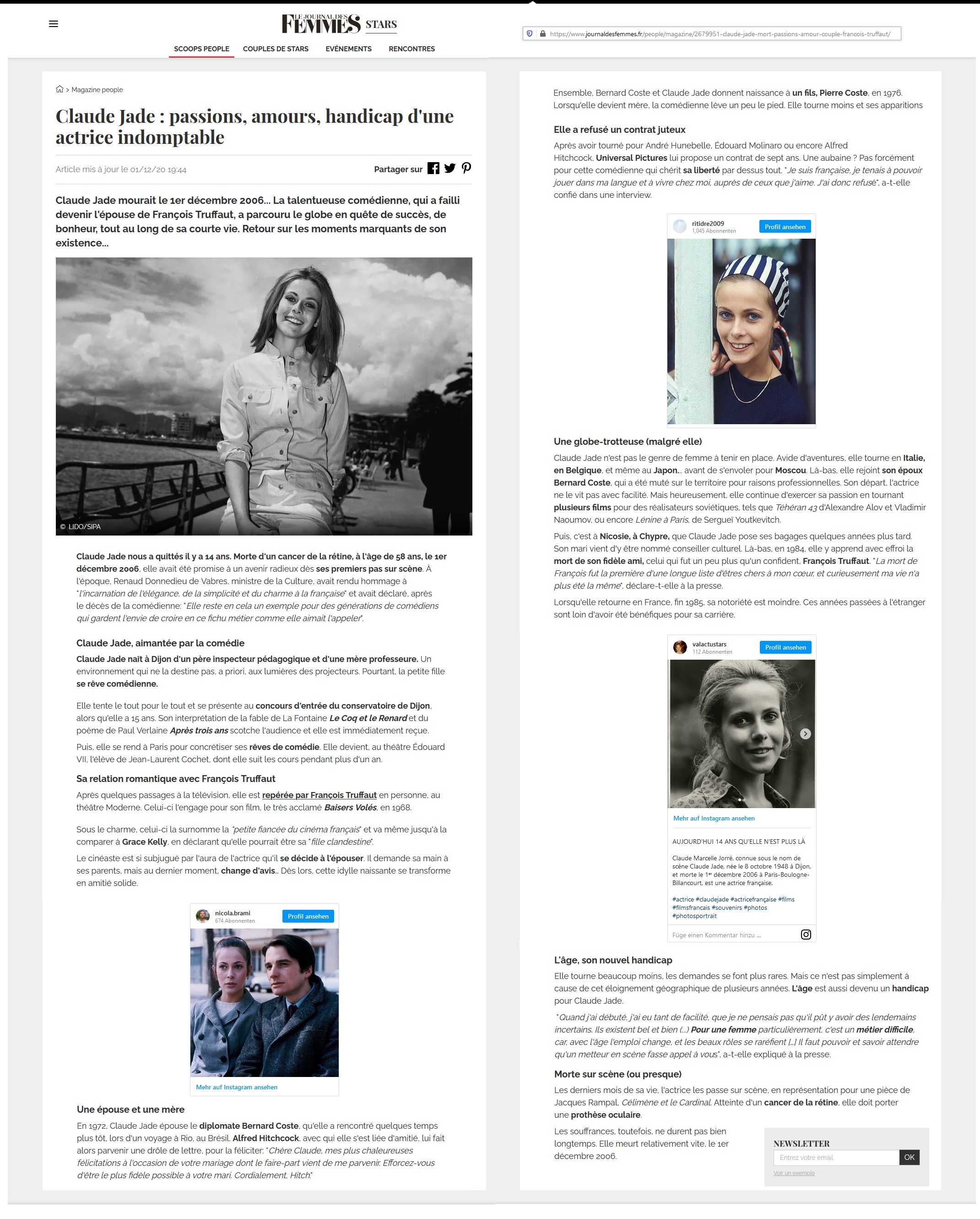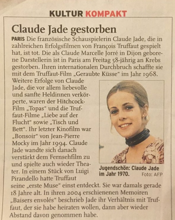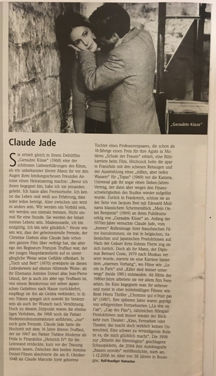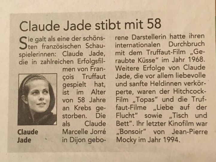 Claude Jade wird für die weibliche Hauptrolle der Françoise besetzt und Truffaut schreibt ihr:
