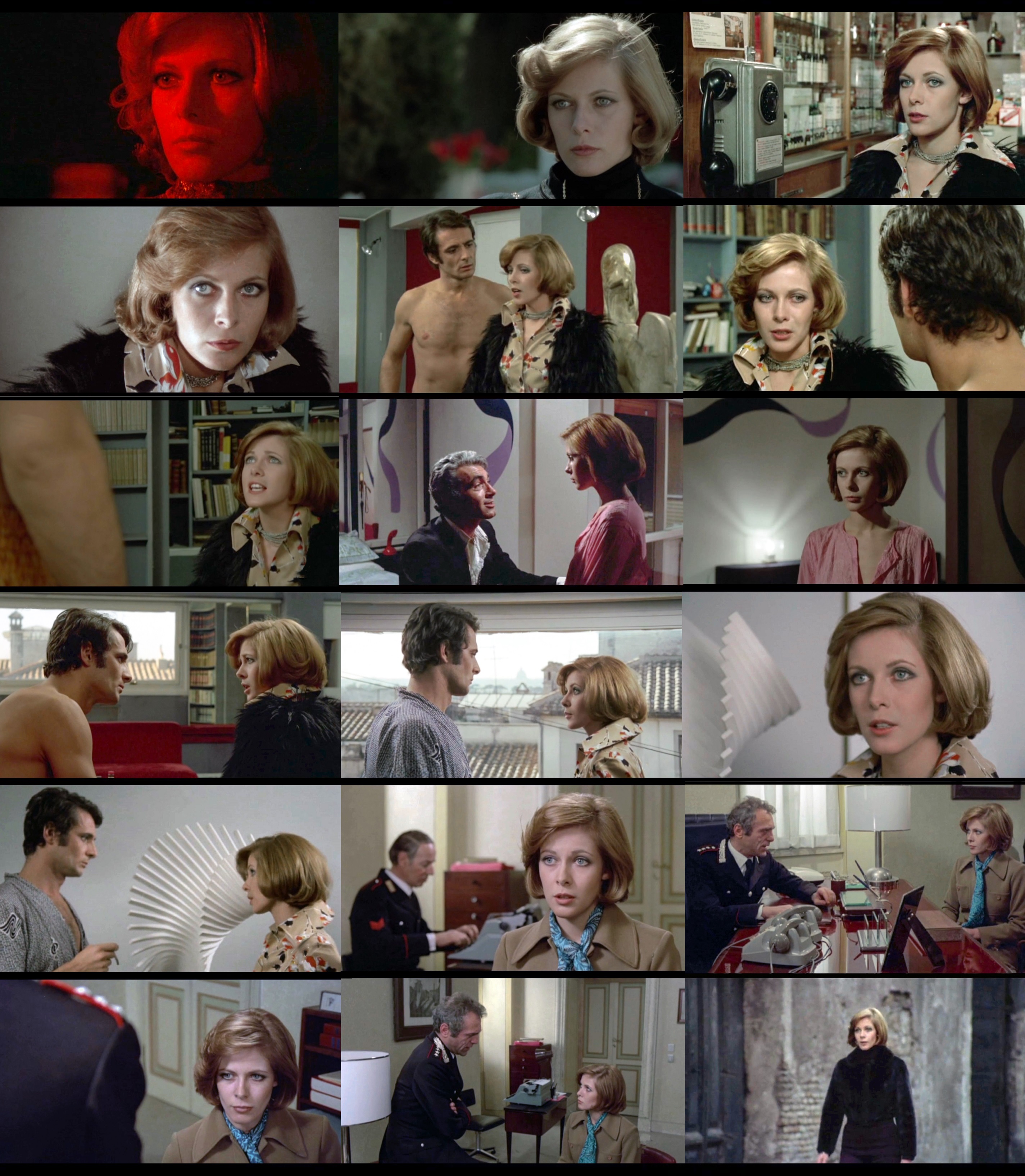 Tiffany ist in Sandro verliebt und unterstützt ihn bei seinen Ermittlungen, doch der Detektiv verliebt sich in Laura (Femi Benussi), Stripperin, Boutique-Besitzerin und Lebedame. Claude Jade ist nicht die femme fatale; Tiffany bleibt die zuverlässige Vertraute des Helden. Ihre Liebe bleibt unerwidert wie bei Midge (Barbara Bel Geddes), der Freundin des Detektivs (James Stewart) in Hitchcocks „Vertigo“. Der Held könnte mit ihr glücklich werden, doch er verfällt Laura, die ihn am Ende fallen lässt.